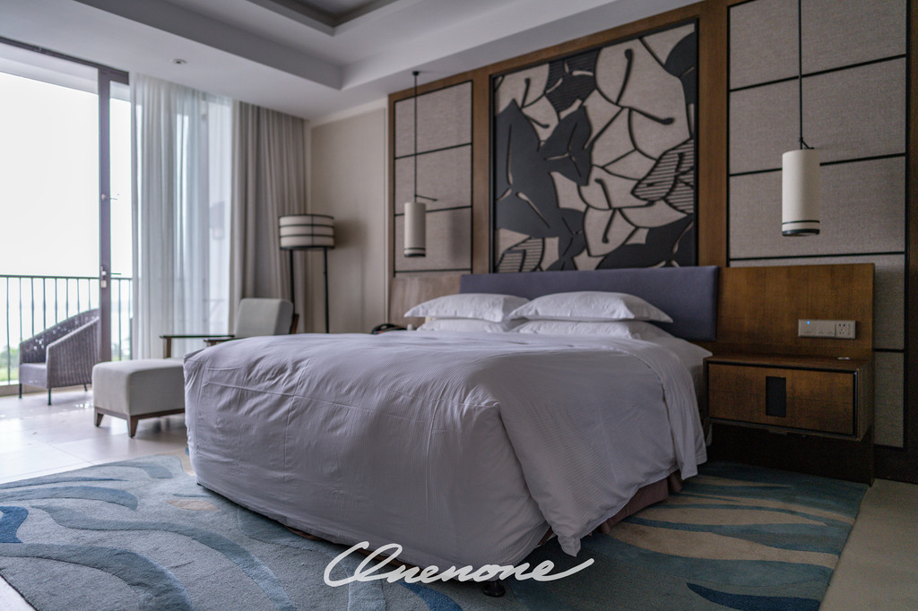 床品布草:布草品牌康乃馨Canasin,床垫品牌金可儿KING KOIL。康乃馨精选榉木纤维织造而成,拥有比棉织品更高的吸湿排湿性能,更加舒适柔软,特别适合热带海岛气候。酒店款的金可儿床垫多采用三区独立弹簧系统,从而提高弹簧单元的覆盖率和床垫整体的支撑性,加上高品质的织造材料和制作工艺,打造出绝佳柔软的触感,让入住宾客的睡眠质量飞升。