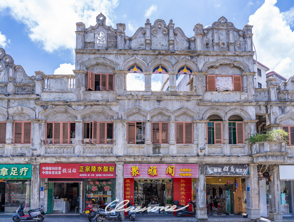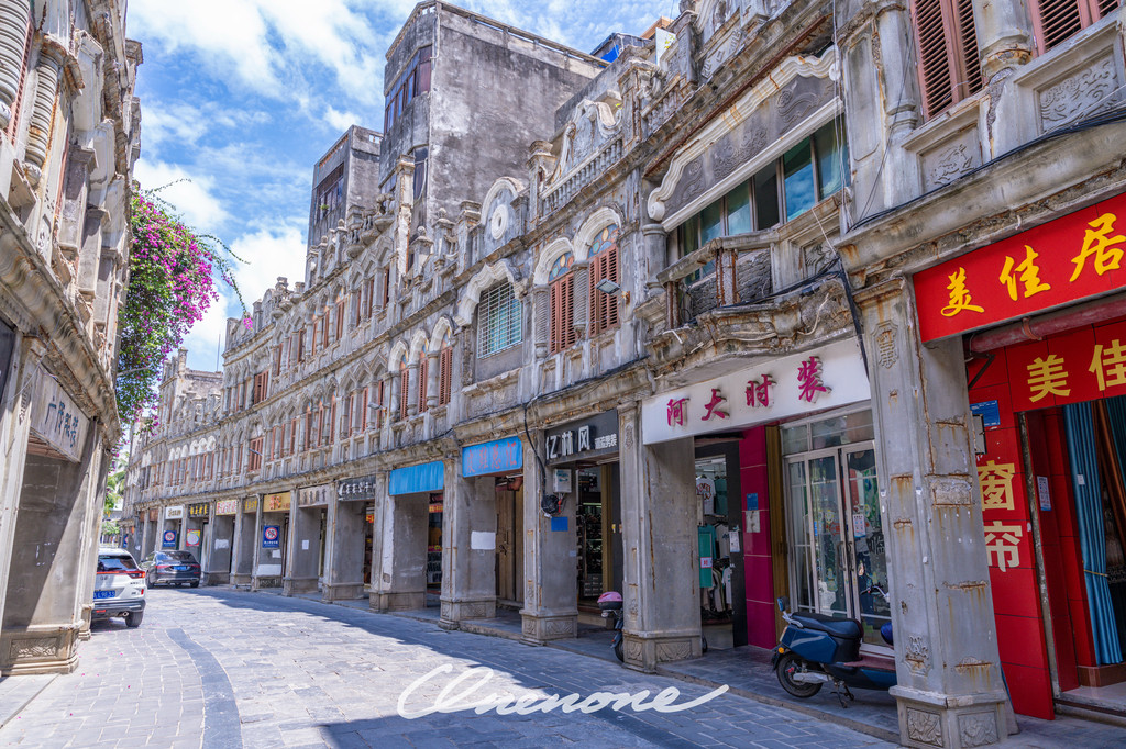 自明代起海南人就有下南洋的风气,清末民初时期更甚。随着南洋华侨陆续返乡,在海口、文昌等华侨众多的市县,逐渐涌现出了一批南洋风格的骑楼式建筑,并发展成为颇具规模和异域风情的特色街区,海口骑楼老街、文昌铺前老街、文昌文南老街就是骑楼建筑艺术的代表。