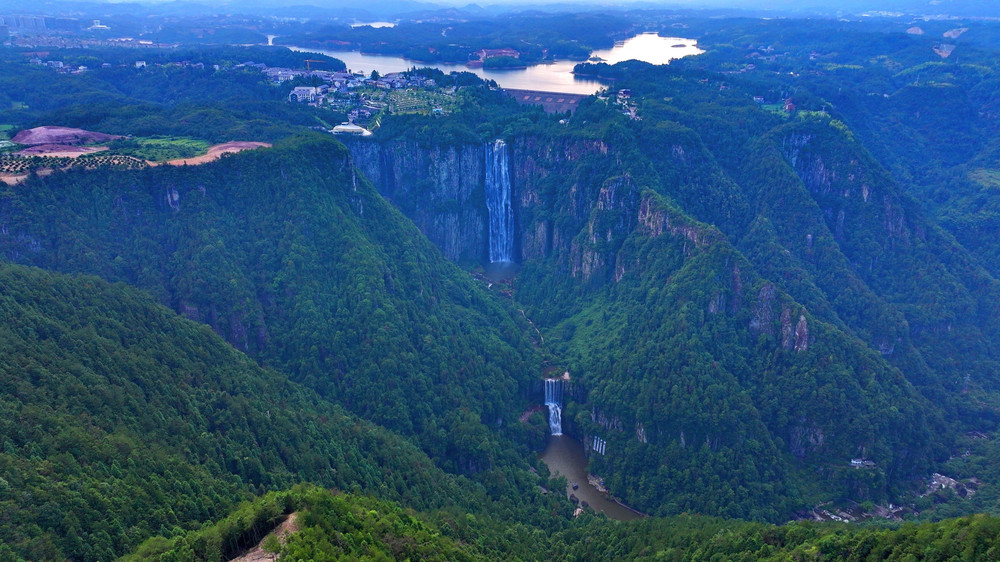 百丈漈漈头是8000亩天顶湖,这里北纬27度,海拔638米,不仅自然风光旖旎,而且气候宜人,十分宜居。