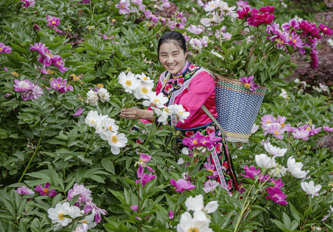 渔子溪村的芍药花海、