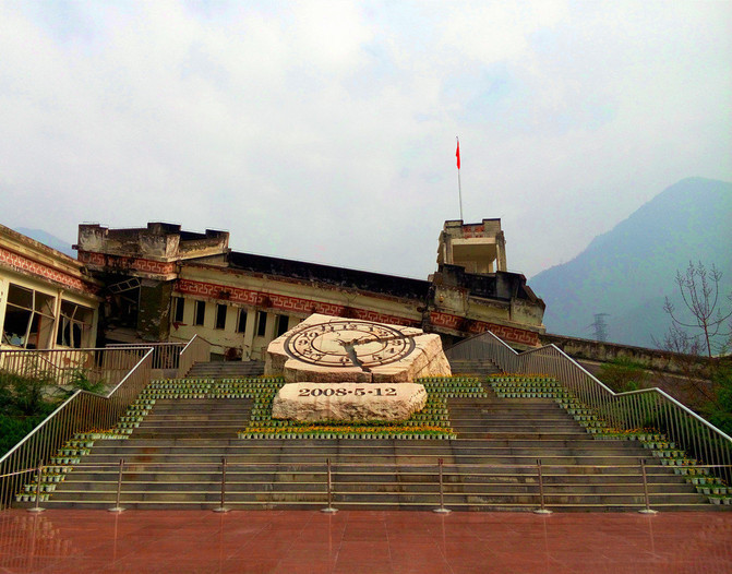 到了映秀之后我们去参观了映秀镇漩口中学遗址,这是一所512地震影响甚大的一所学校,一入学校门口映入眼帘的就是白色石头上刻下的2008.5.12字样。
