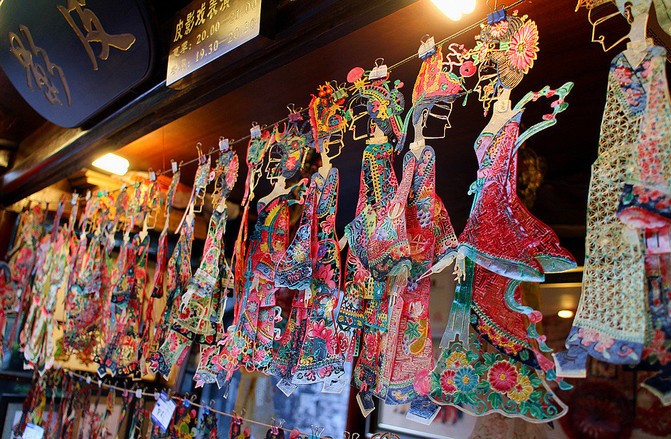 皮影,又称灯影戏,是四川皮影中最具代表性的艺术品种。属四川西路皮影,古朴、庄重、典雅、大气的造型特点在中国民间艺术中独树一帜,它美观华丽、雕工精致、线条流畅,设色古朴不失鲜艳,其大气、典雅的特点,给人以智慧和深邃感觉,使人一见倾心。皮影的造型全靠手上功夫,从一张牛皮雕刻成千万美丽的影子,再幻化成百千感人的故事,小小的影子既能让人悲悯剧中人,也能跟随它一起欢天喜地的迎神祈福。