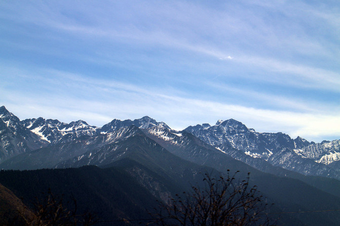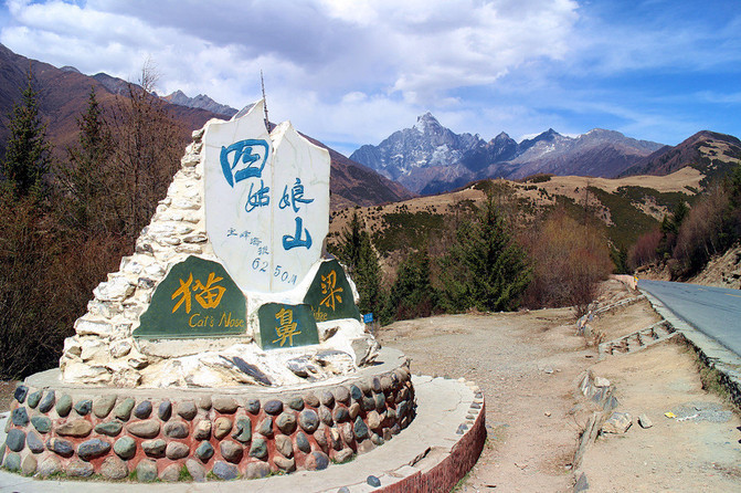 巴郎山最高海拨5040米,山峰峭壁磷峋、陡峭异常,顶峰有积雪,被白色的云雾笼罩,从车窗看出去,盘山公路弯弯曲曲,尤如仙女腰间的飘带,山腰上去雾缭绕,宛如仙境。