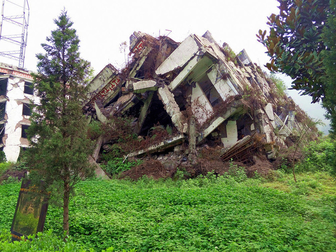再看看这一幢幢倒塌的楼房,“遗址上的几幢楼倒塌方式各不相同,有的是建筑物最薄弱的地方扭曲(如楼梯、门窗),有的则底层塌陷至地下,有的一端已经垮塌另一端严重倾斜,有的楼是千疮百孔,还有那指针停在地震发生时刻的纪念钟……