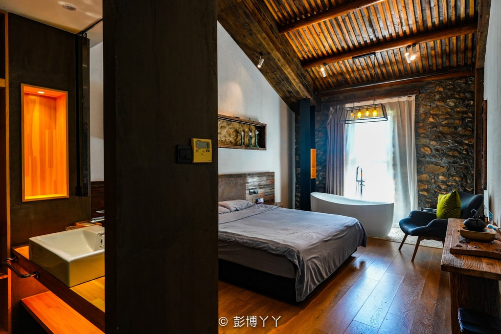 中午直接杀到坞根花溪村,入住喜柿山谷民宿。民宿是一幢石头建成的山房,有点中世纪欧洲乡村那味。白天暖阳透过落地窗洒进屋内,整个民宿都被阳光充满,夜晚,灯火阑珊,房间的灯宛如一颗颗繁星点缀在山间。