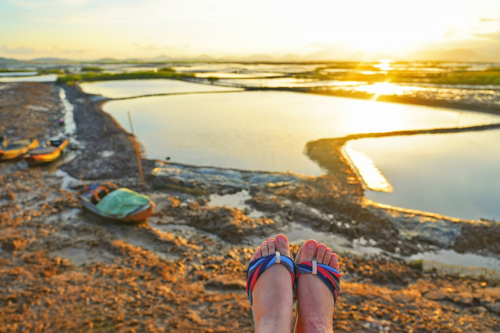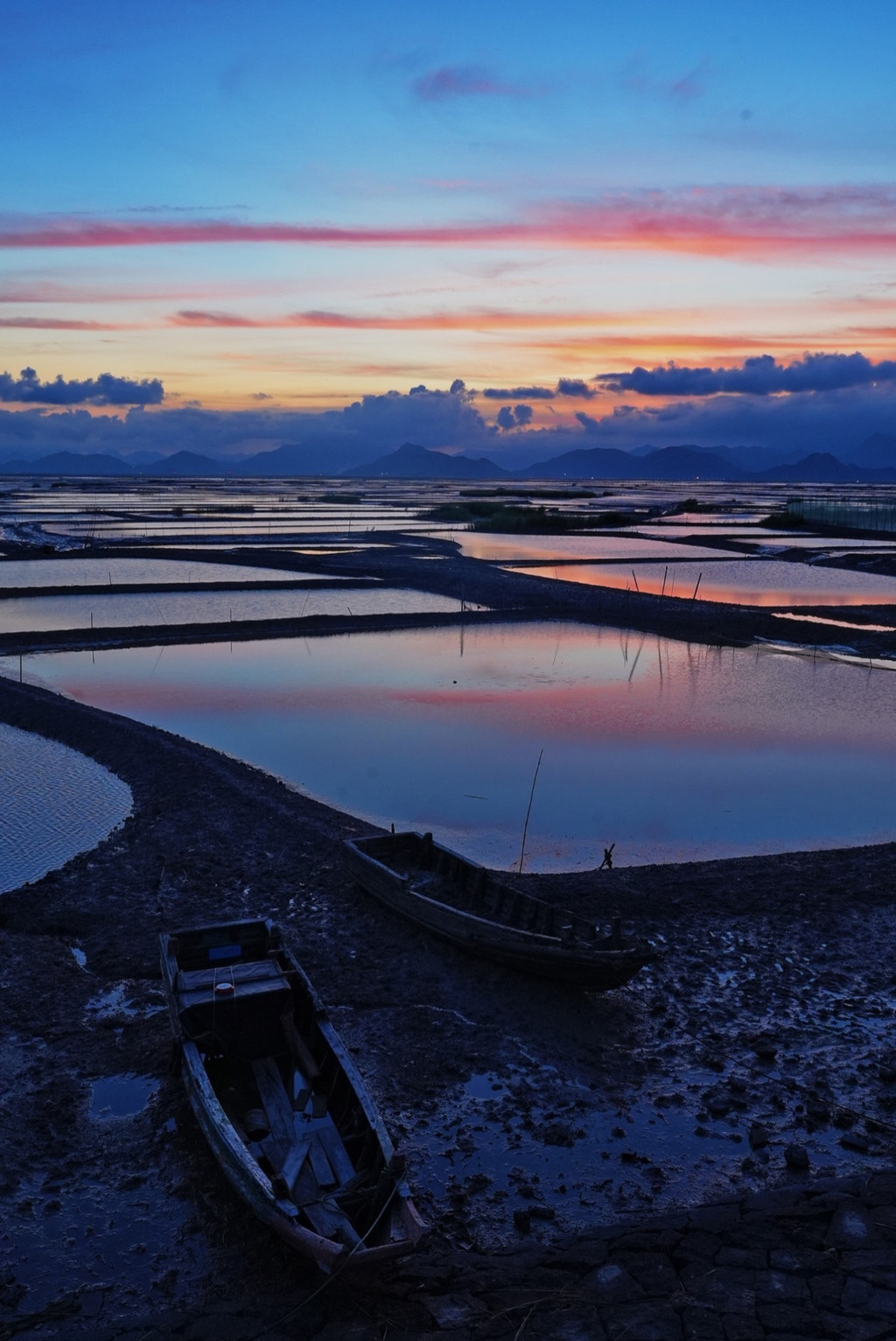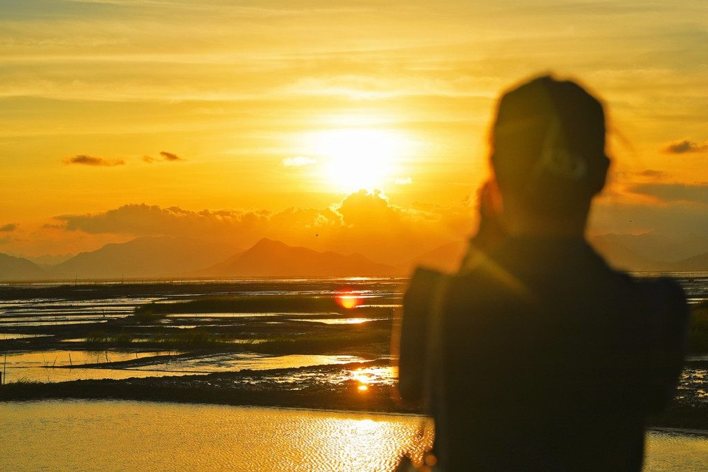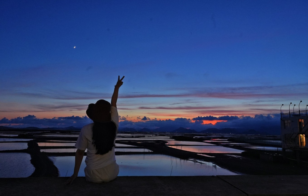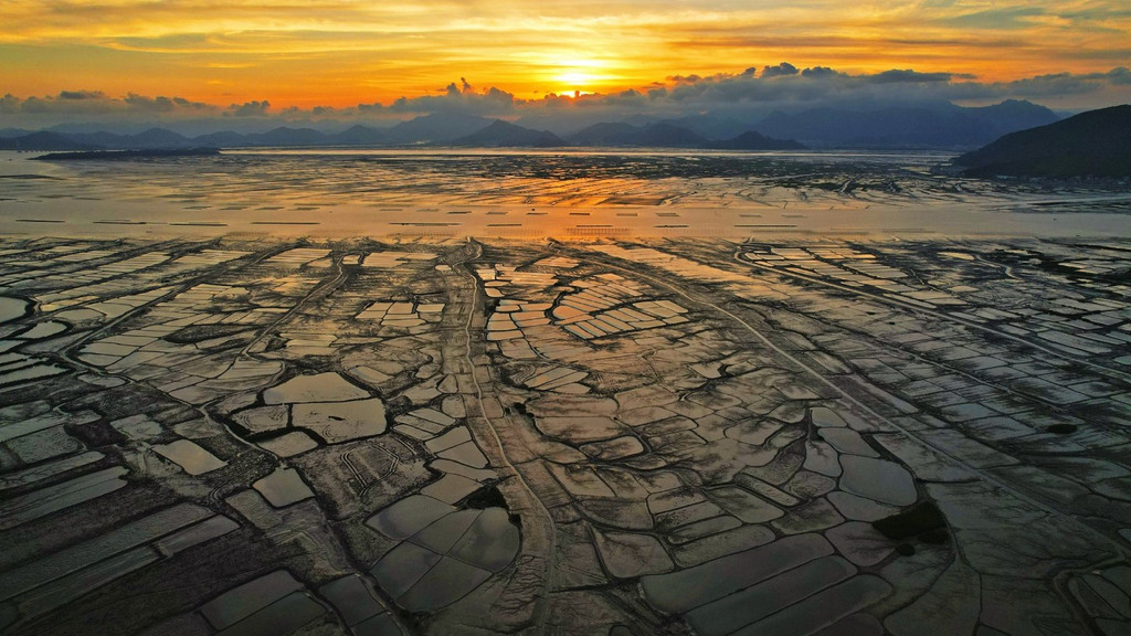 如果你错过了石塘的日出,那就别再错过八一塘的日落!傍晚黄昏的滩涂,被金色的霞光勾勒出不规则的几何线条,彰显着另外一种美。