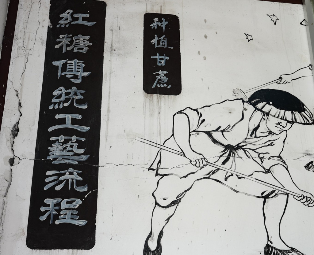 在这里可以亲身体验到古方酿制万顺红糖的过程。不过现在还没到收割的季节,只能看到阿姨在馆外边炒制红糖边直播,当然这里还有着各种不同种类的万顺红糖产品,如黑糖、糖霜等,可以满足不同人群的需求。