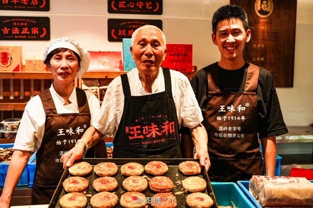 这次温岭之旅不得不提的还有一家隐藏在温岭城南的百年老字号,创建于1914年的王味和,他家的糕点店几乎承载着城南几代人的儿时味道。“王味和”非遗第三代传承人王秀娟,在追求糕点创新的同时,默默坚守着记忆中的经典老味道,随着选料和技法不断地改进和创新,更用老传承、老味道开启了新生活。