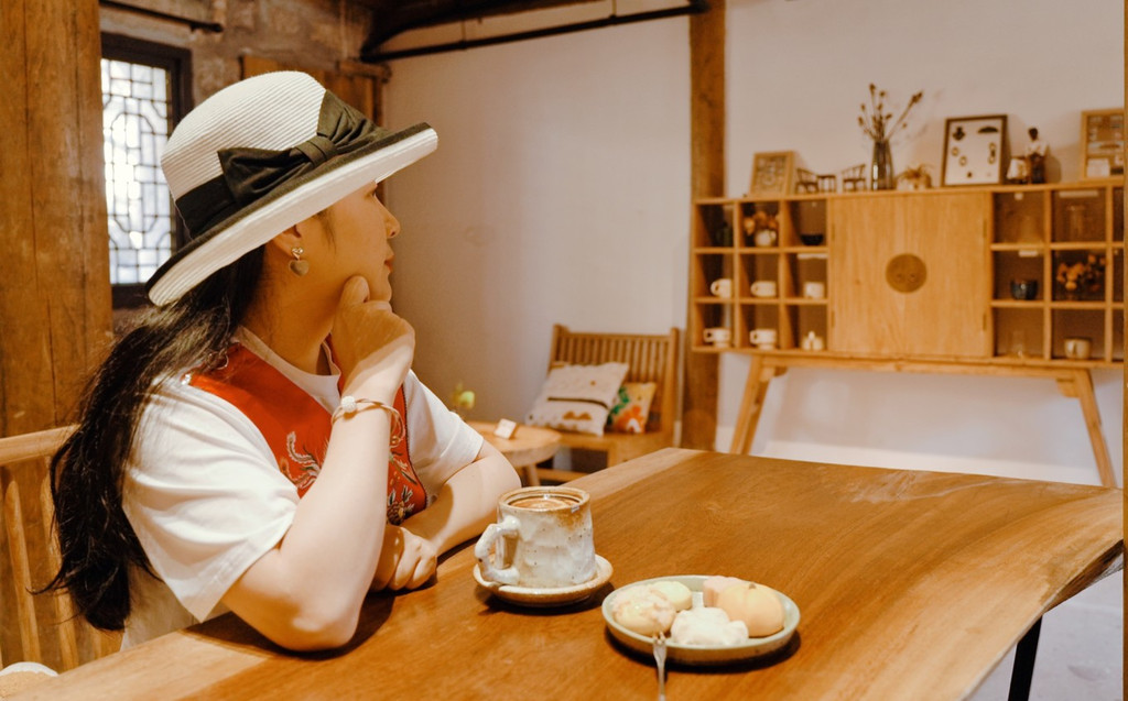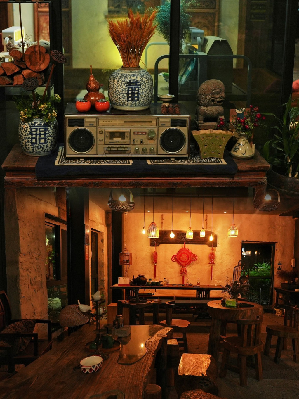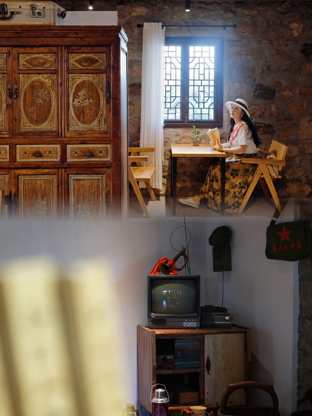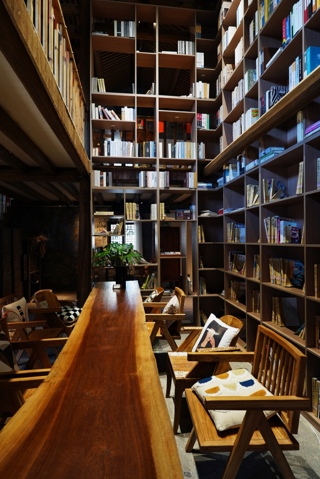 檐下窗棂间节气更迭,在山谷里对着青山绿水,慢悠悠喝一杯复古又充满情怀的咖啡。好几面大书架的书,随意挑选一本,在斑驳的光影里,缓慢流淌的音乐和时光中,静下来。