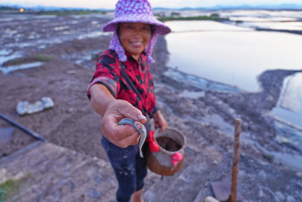遇到一个赶海归来的阿姨,她掏出今天的收获,好不容易挖到的跳跳鱼,脸上洋溢着满足的喜悦。如果你也想“下海”试试,据说这里还有赶海研学项目提供哦。