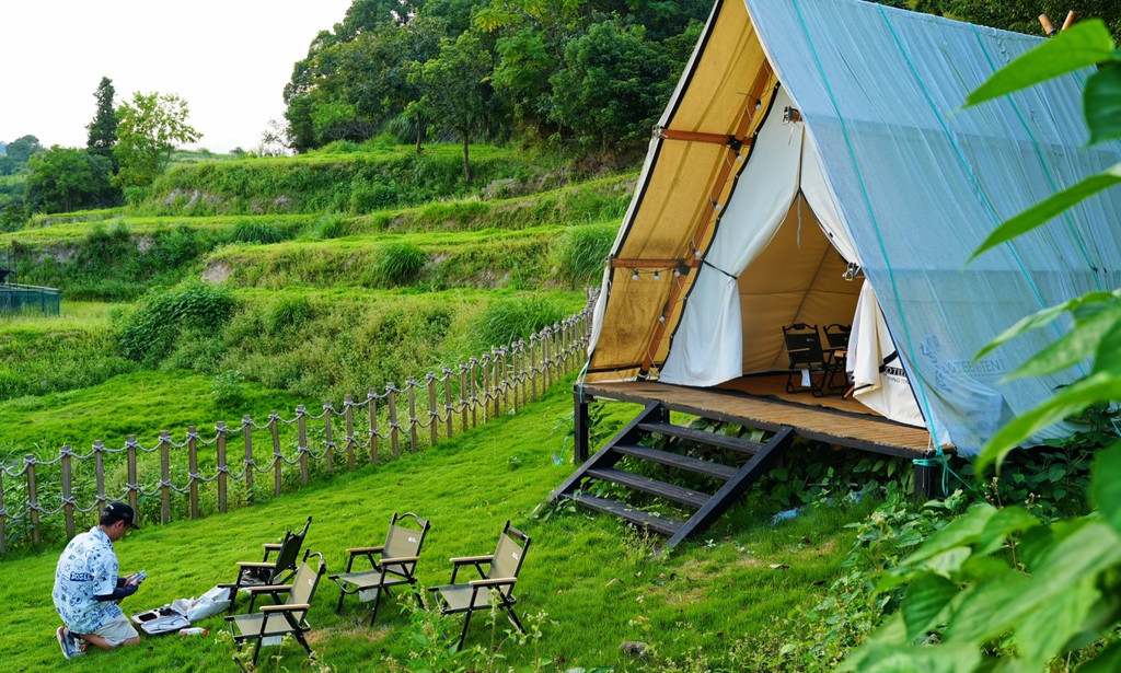 这里还有露营基地,全家可以在帐篷喝喝下午茶吃吃烧烤,触目所及绿水青山尽享自然。