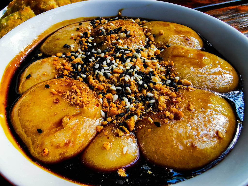 乐清的小吃真的是太丰富了,有20多种小吃已经列入市级非物质文化遗产名录,而这条非遗美食街里基本囊括了乐清最经典的小吃,除了上面提到的三款我最喜欢,也是第一次品尝的小吃,麻糍、咸菜饼、煎饼达人、小丸子、冰粉、凉茶等等,可以一次性打卡这么多小吃,好过瘾。