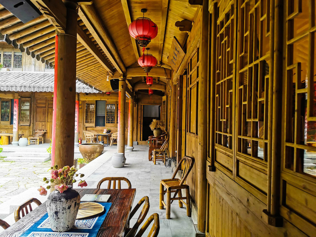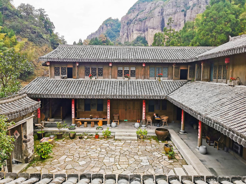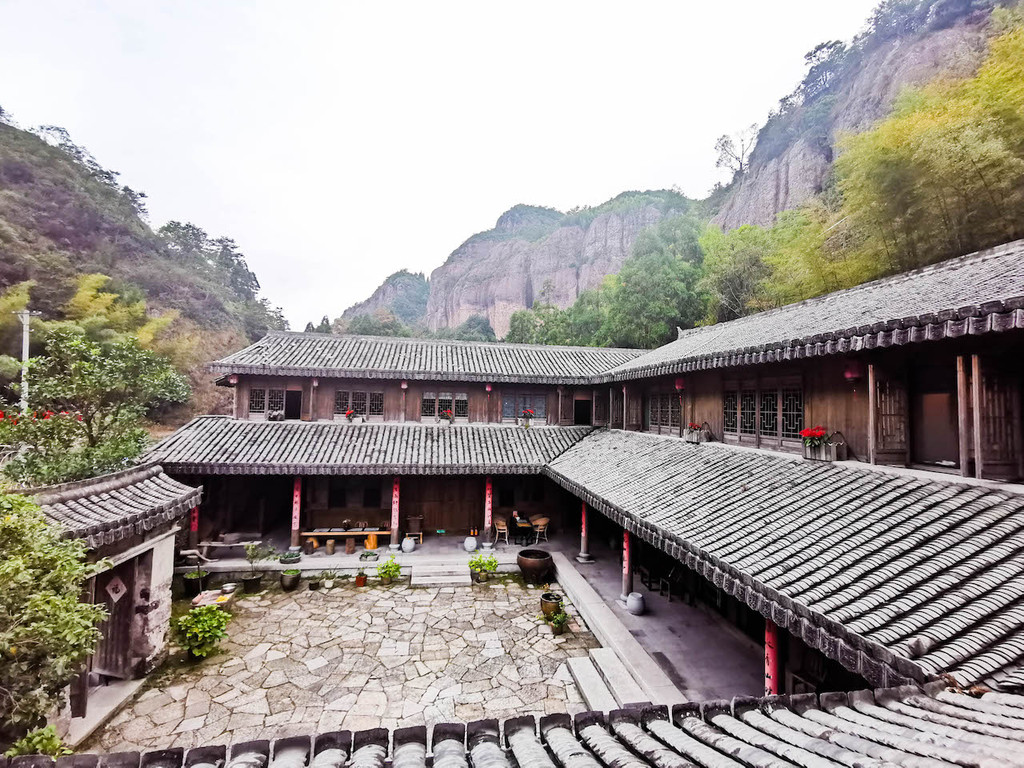 大宅依山傍田,平坦如砥的龙游溪从宅前流过,古朴的大宅是这座古村保留相对完整的古宅了,江南庭院四方工整,青石板的地面,木质的房屋,廊下是一排排木桌椅,简单的装点,闲来无事的时候,坐在这小院子里喝喝茶,红尘琐事都会抛在脑后。