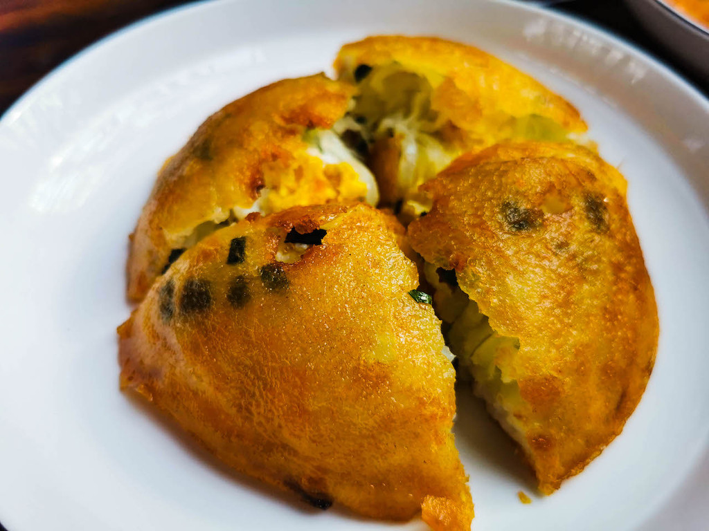 番薯很多人都喜欢吧,我也喜欢,不过把番薯做成饺子,那是我第一次见。在乐清非遗美食里,番薯黄夹就是了。这里的番薯黄夹皮薄有韧性,口感超级好。