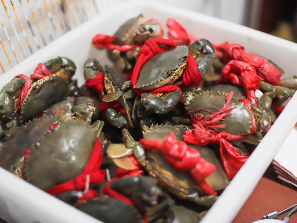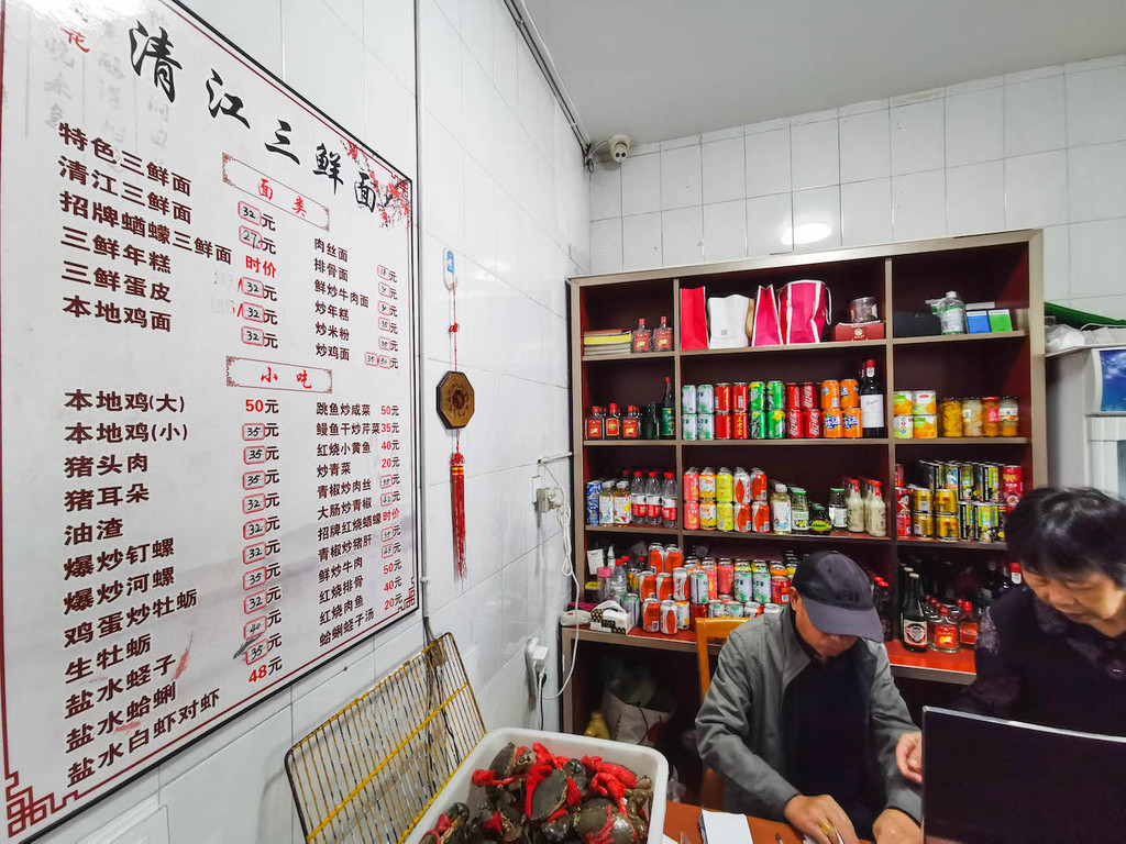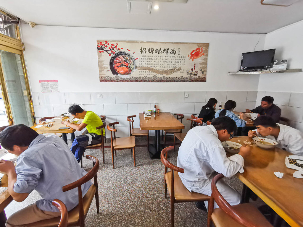 而且这里的三鲜面还有一款招牌面,就是加了蝤蠓这种海鲜,蝤蠓一般指锯缘青蟹,是梭子蟹科、青蟹属甲壳类动物,高蛋白低脂肪,营养价值非常丰富,长期食用可以祛斑美容,滋阴壮阳。我们去的时候一筐新鲜的蝤蠓摆在那里,不过这里的招牌蝤蠓三鲜面是有时令价格的哦,下次有机会可以去尝试一番。