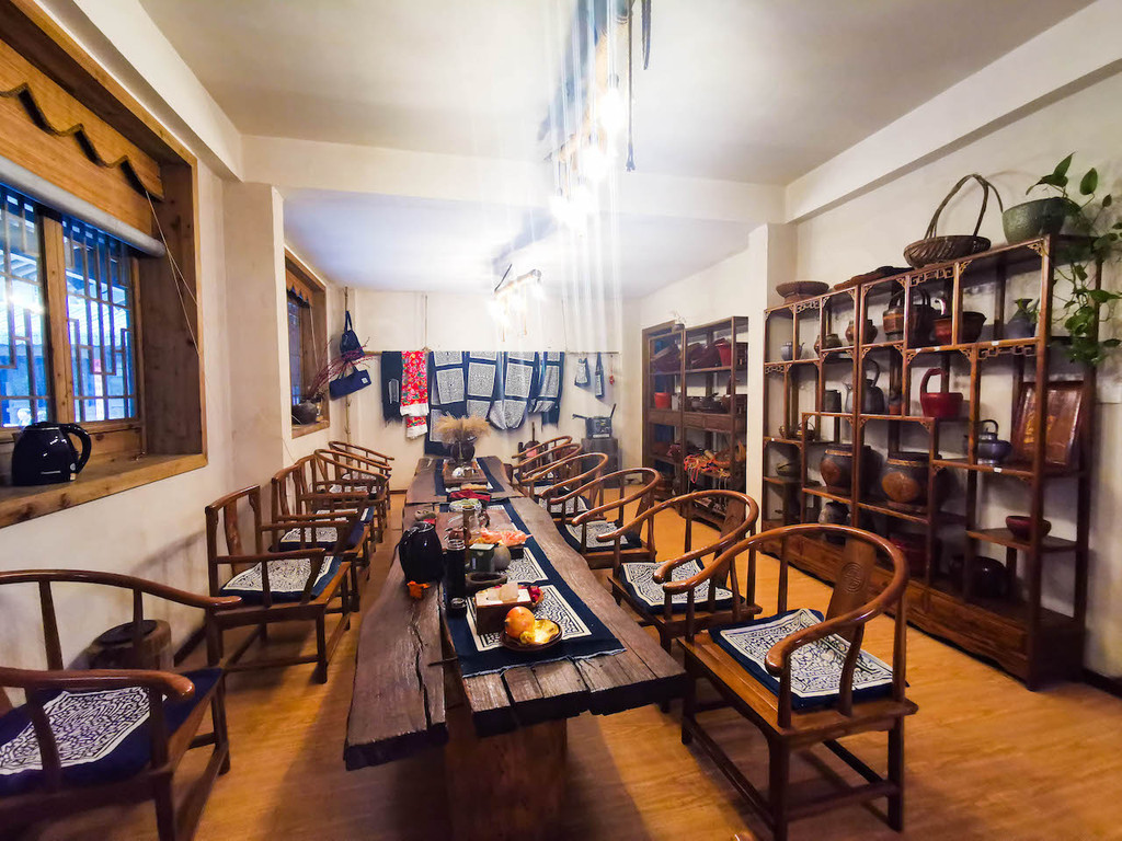 石雕、木刻、蓝夹缬,还有主人从各个地方淘来的老物件,多种传统技艺集聚在这一方大宅院里,住在这里,不仅可以慢悠悠的蹉跎光阴,还能欣赏和体验到这里的非遗技艺。