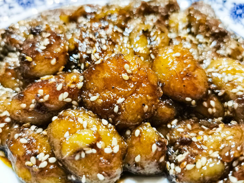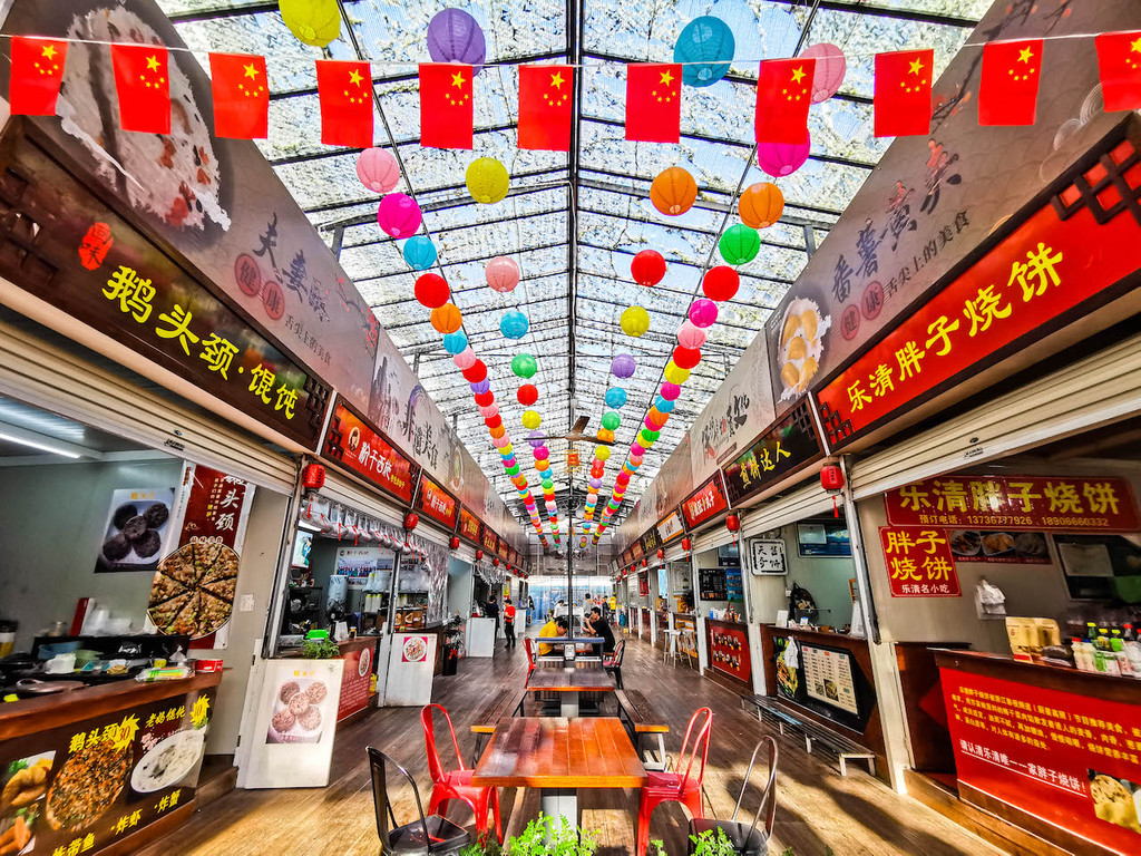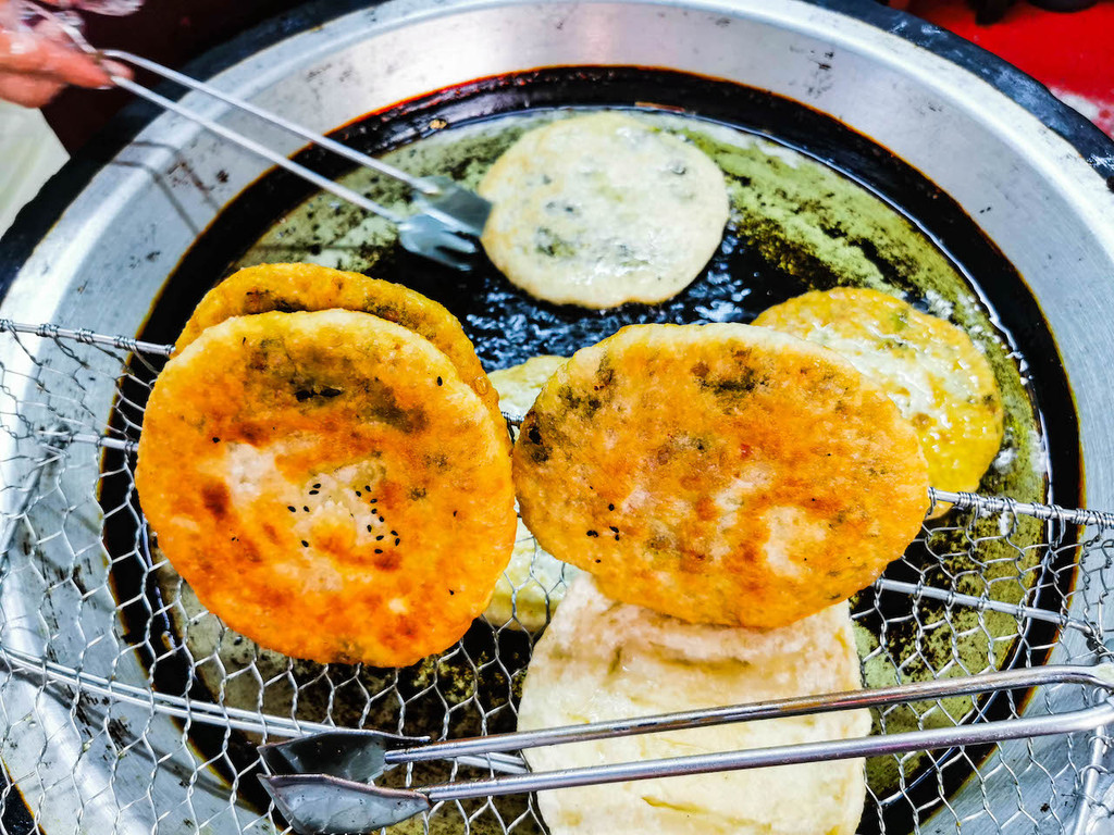 乐清的小吃街,就在市区的西铁新天地里,这是一条非遗美食街,在这个只有50米左右长的小街道上,各种具有乐清本地特色的非遗美食却琳琅满目,芙蓉麦饼、番薯黄夹、姜酒红糖麻糍、鸡灯丸、灯盏糕真是应有尽有。