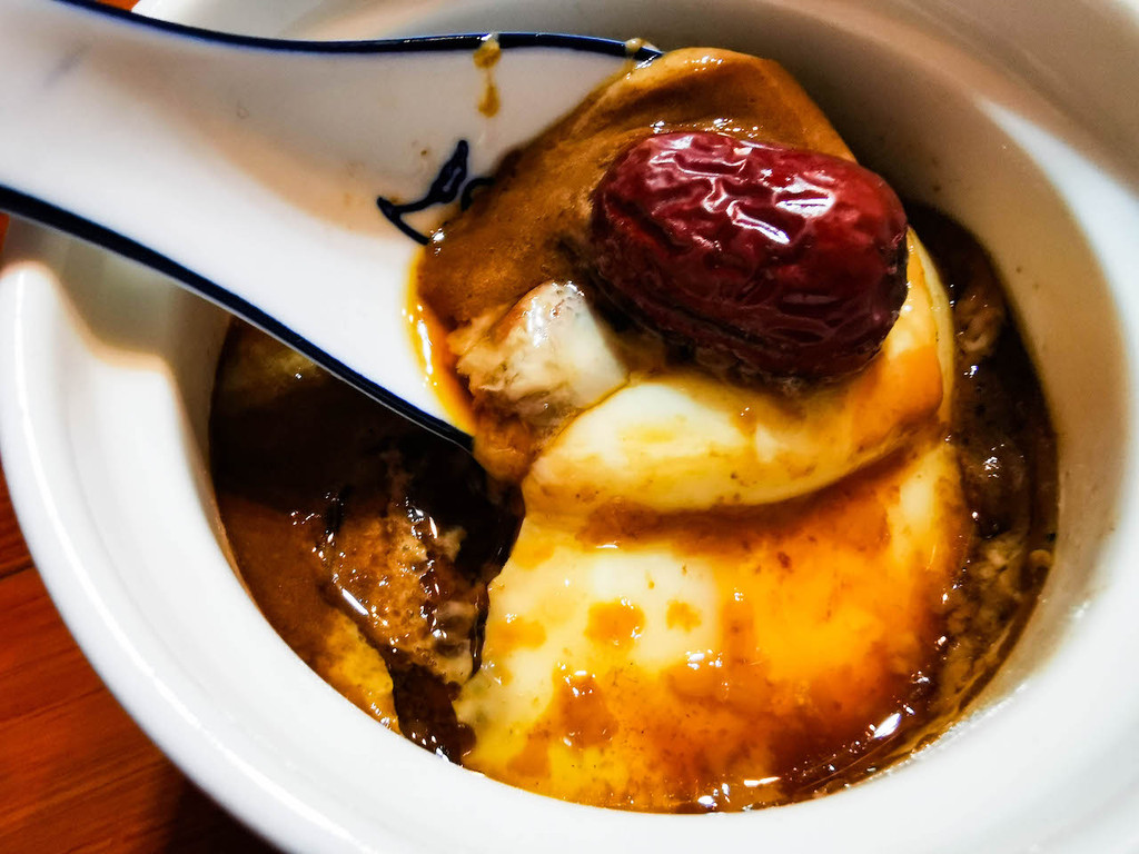 这道菜我一定要写一下,因为我真的很好奇,这是用当地的黄酒蒸的鸡蛋羹,里面加了红枣,蛋羹带着浓浓的黄酒味道,对于我这个不喝酒的人来说,这道菜,我是难以下咽的,但是你知道吗?当地人都这样吃,据说是因为很滋补,不知道你有没有吃过呢?