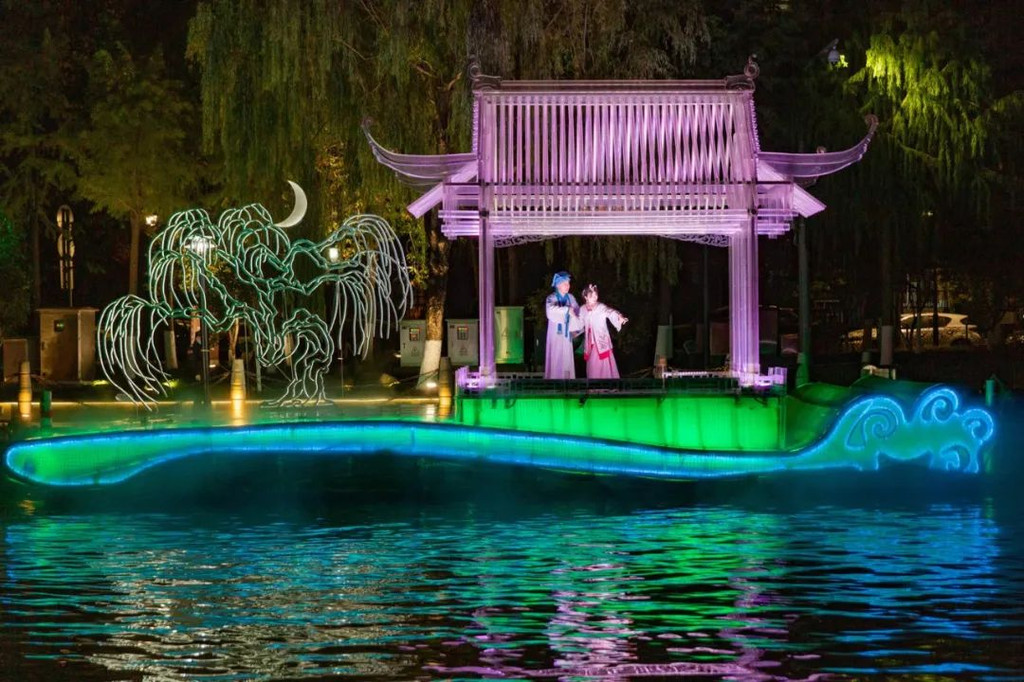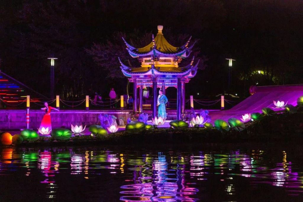 夜幕降临,享用完丰盛晚餐后,步行三五分钟即可抵达塘河,游船欣赏“六画塘河”的主题演出。
