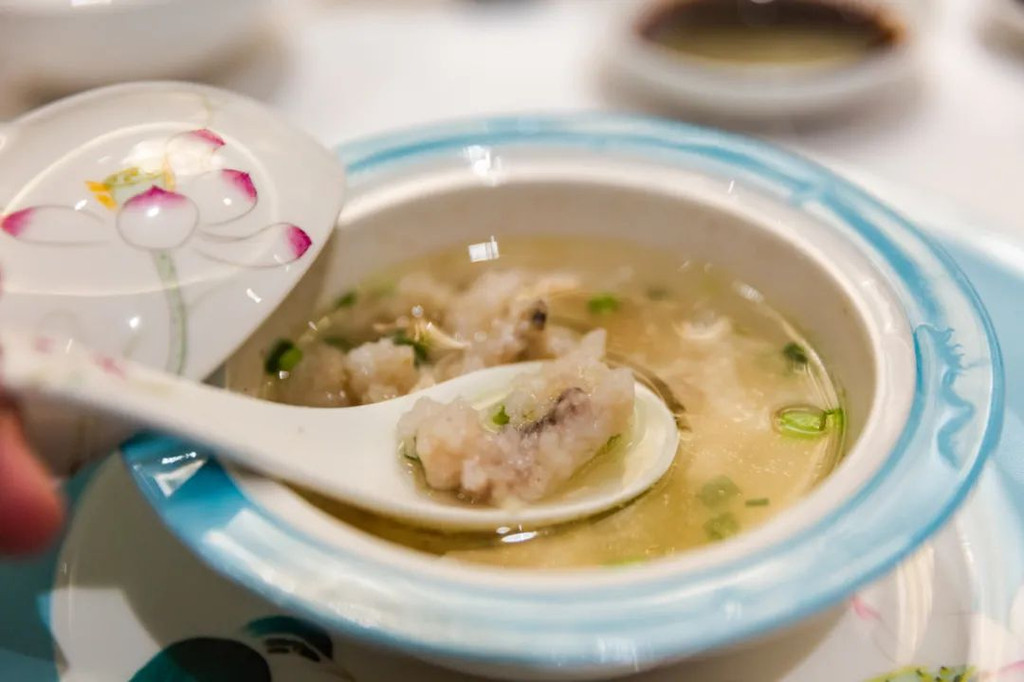在包间里还欣赏到餐厅大厨现场制作温州鱼丸汤的过程;金瓜肉酱蒸本地猷蠓和秘汁酒香东海黄鱼也是极为推荐的本地美食。
