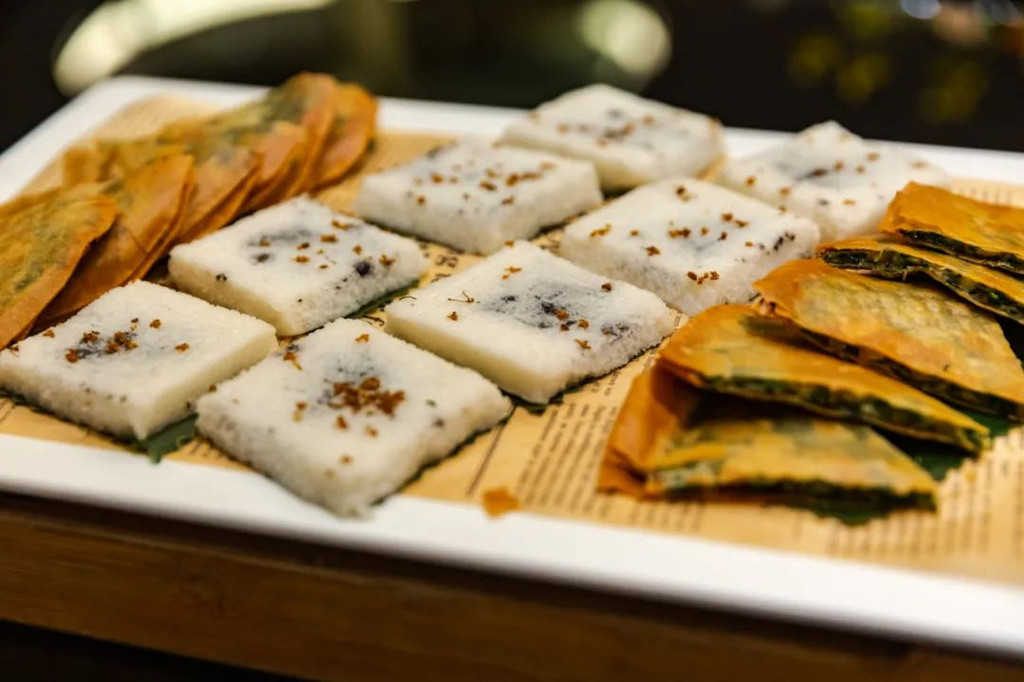 而我个人也比较喜欢红烧盘菜配水东芥菜和韭菜煎饼配桂花糕。