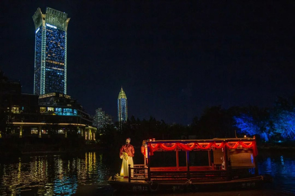 演出以瓯越文化为主题,以游船为载体,打造出塘河夜景游览路线,通过“六画塘河”6个主题篇章,为宾客们呈现出温州城市记忆。