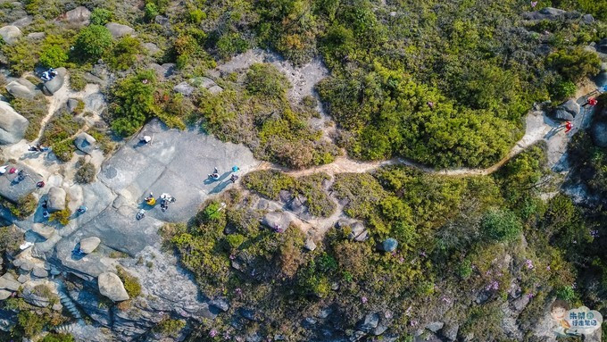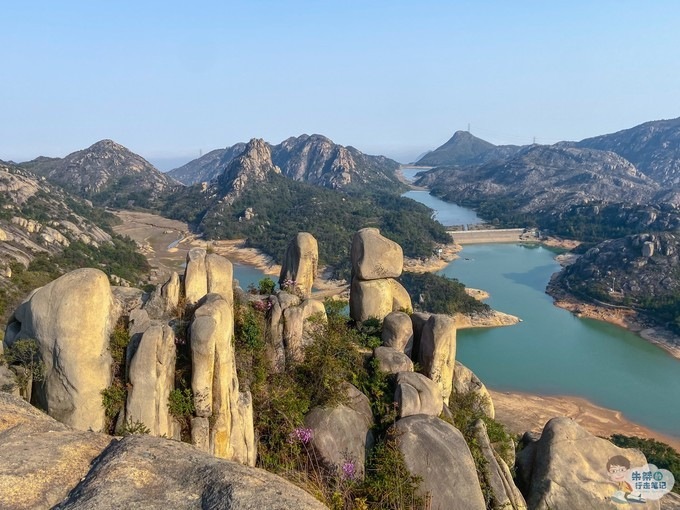 登大罗山田螺背一定不能轻言放弃,因为它最美的风景在后面,而且路途中总会有惊喜。田螺背作为大罗山石景中最为独特的一部分,在我们登山的过程中会发现无数的奇形怪石,而我这次来挑战的季节刚刚好,山上的杜鹃花盛开,眼前一片春色。登顶田螺背,俯瞰天河水库宛若一块玉石坠落在人间,极目眺望,四周群山绵延不绝,大有“会当临绝顶,一览众山小”的震撼气魄。