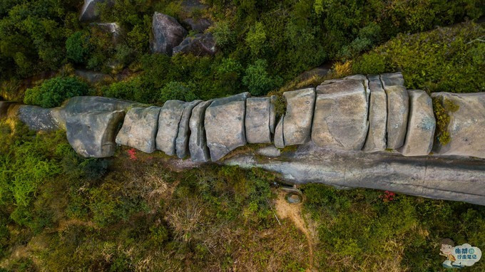 因为“七分像三分想”,所以这23块形状相似的岩石组成在一起形成的状犹如巨龙的龙脊骨的岩石景观,故而得名龙脊。这23块形状相似的岩石,形成距今1.2亿年左右,属于花岗岩地貌,典型的火山岩构造,经过亿万年的自然风化形成了这独一无二的自然景观。