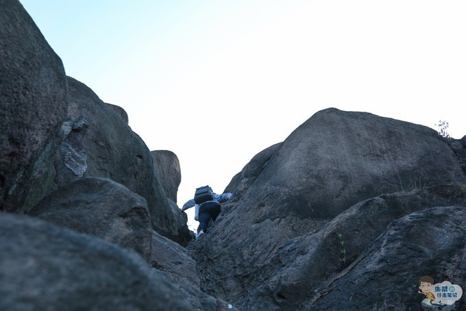 登田螺背的一段山路,对于户外爱好者来说是如履平地,但是对于普通的登山游客来说,这里可不是那么简单的。虽然这里海拔不高,但是因为没有尚未完整开发,山路崎岖举步维艰,甚至有很长的一段,登山游客是需要手脚并用,双手撑着两边的岩石,双脚踩着前人留下的足迹,有时候是横着走,有时候需要借助岩石或者树枝来防止脚下打滑,挑战完一段之后,又会遇到峭壁的山崖,有或者是爬过一个又一个山洞。如果不是强大的信念支撑,即使体力尚有余也会中途折返了吧!