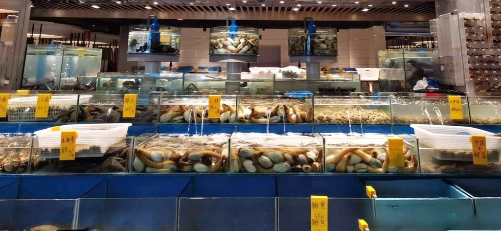 这来的点菜区也很大,各种各样的海鲜摆满明档,看起来就有食欲。菜烧的也不错,朋友说这是温州传统家常菜的风格,地道温州味,而且价格也相当实惠。5个人,点了满满一桌海鲜,喝了一大堆啤酒吃完一买单,才700多块,人均120块,实在是很nice。