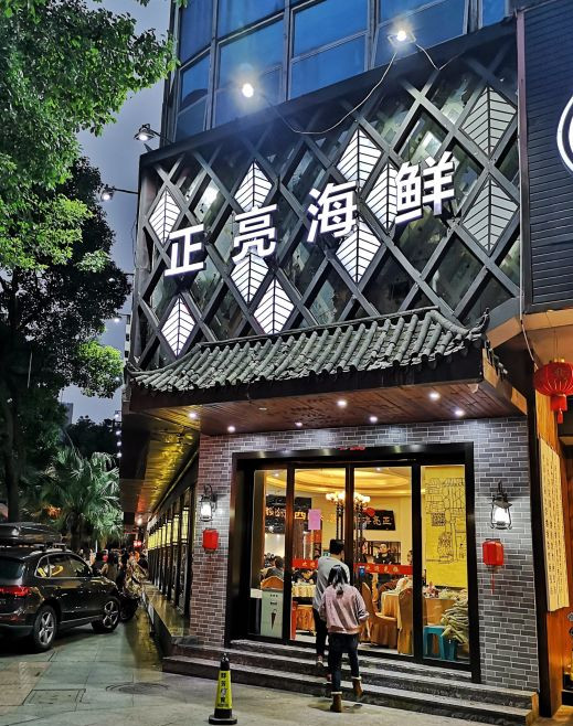 南塘街据说是温州市区的一条改建的老街,位于温州的母亲河:南塘河边,亭台楼阁,晚上流光溢彩,很漂亮。正亮海鲜大排档就在这里一座酒吧的地下室,虽然地下室,但是面积非常大,感觉很容易迷路的样子。