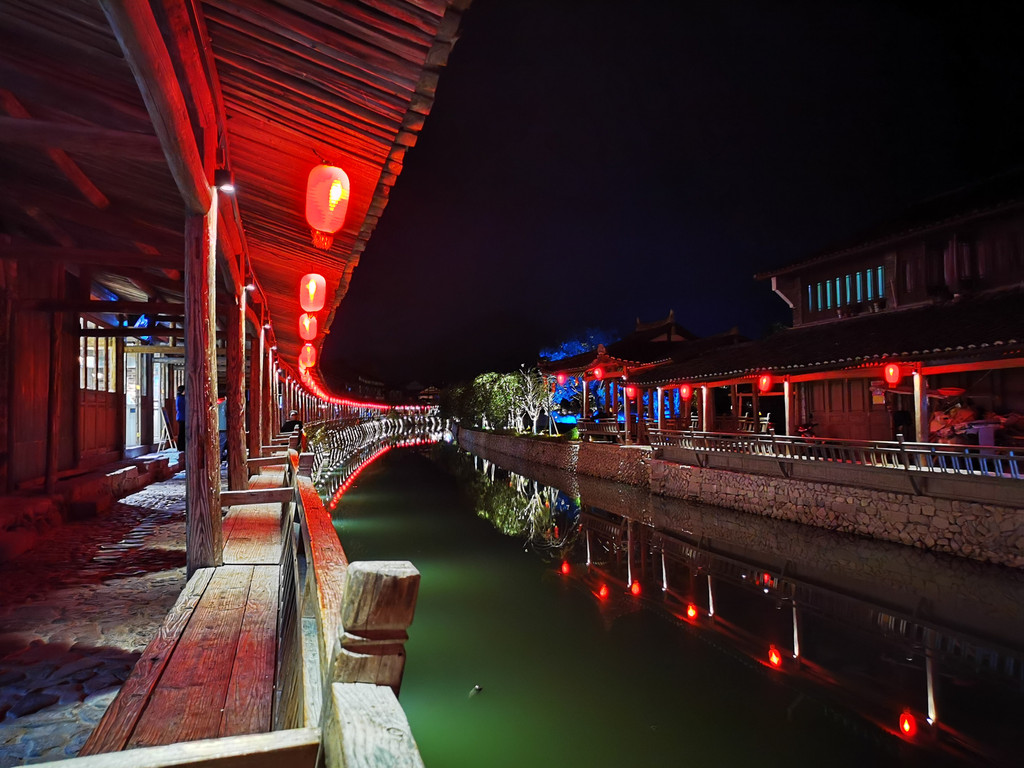 楠溪小厨旁边是丽水街,江南古道,现在改成了一个景区,不过晚上不收费,吃完了逛逛正好。晚上的丽水街挂满了红灯笼,江南古镇似乎都喜欢这个调调。不过丽水街和很多江南古镇不一样,有一条很美的、长长的美人靠,早年是为古道上往来的旅者遮风挡雨用的,如今有很多小姑娘在这里拍照,灯影婆娑,看起来都是美人。