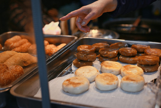 街道两侧,梳理着许多模拟古时生活场景的铜像雕塑,扎染、编织等非遗技术纪念馆。街边小店飘出的阵阵香气,现炸的灯盏糕、香喷喷的糯米饭、 Q 弹的瘦肉丸、油香十足的猪油饼和油蛋、用料十足的炒粉干....许多当地特色美食,在这条街上都能吃到。