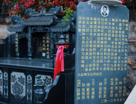 在墓前爸爸给玥讲曾祖父的故事,整个墓区只有曾祖父的墓前有块生平铭文: