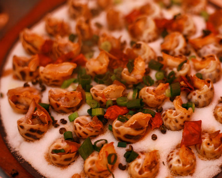 凉菜每盘都有干果、水果相配是特点。记得九年前首次来,我把一盘里蟹和橘子一起吃,回酒店就上吐下泻。当地人一点没问题,真是一方水土养一方人。