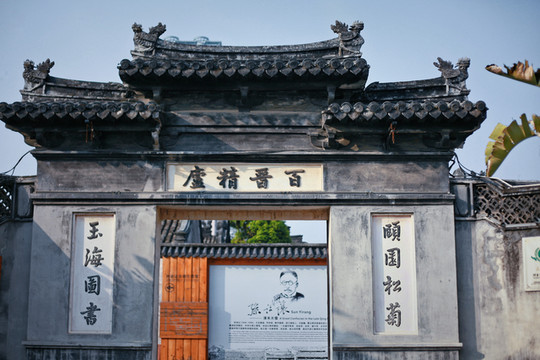 老宅方方正正,三面环水,前后两进各五间,由藏书楼、百晋甸斋、孙氏故居和后花园组成,占地约8000多平方米。