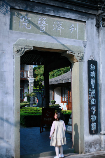 利济医学堂旧址,由门屋、厢房、主楼、中草药圃组成。