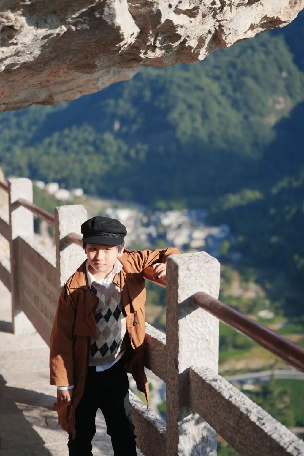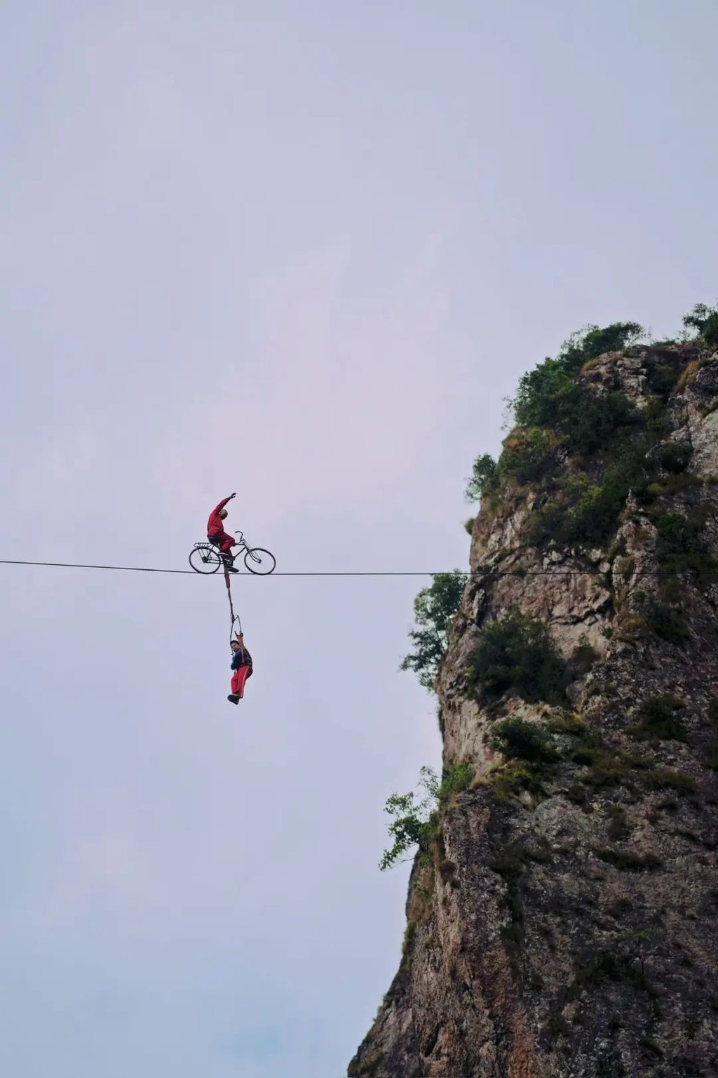 恰巧遇到景区的表演灵岩飞渡,绝壁之间,表演者在高空钢索上行走、翻腾,惊险刺激,元宝看得目不转睛,鼓掌叫好,对这种“空中漫步”充满了好奇,令人叹为观止。