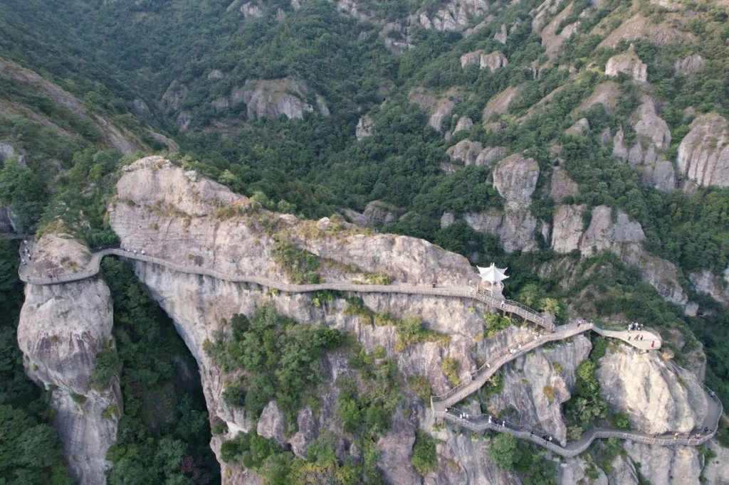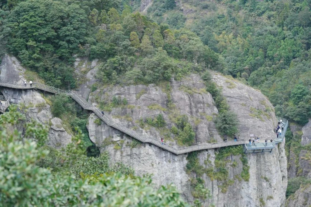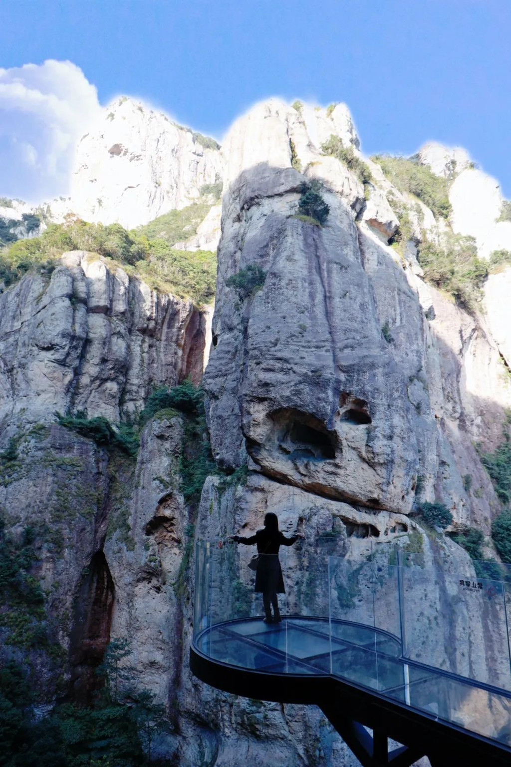 沿着卧云栈道一路蜿蜒前行,便可抵达灵岩。灵岩与灵峰、大龙湫一道被称为雁荡山三绝,以壮丽山色而闻名。