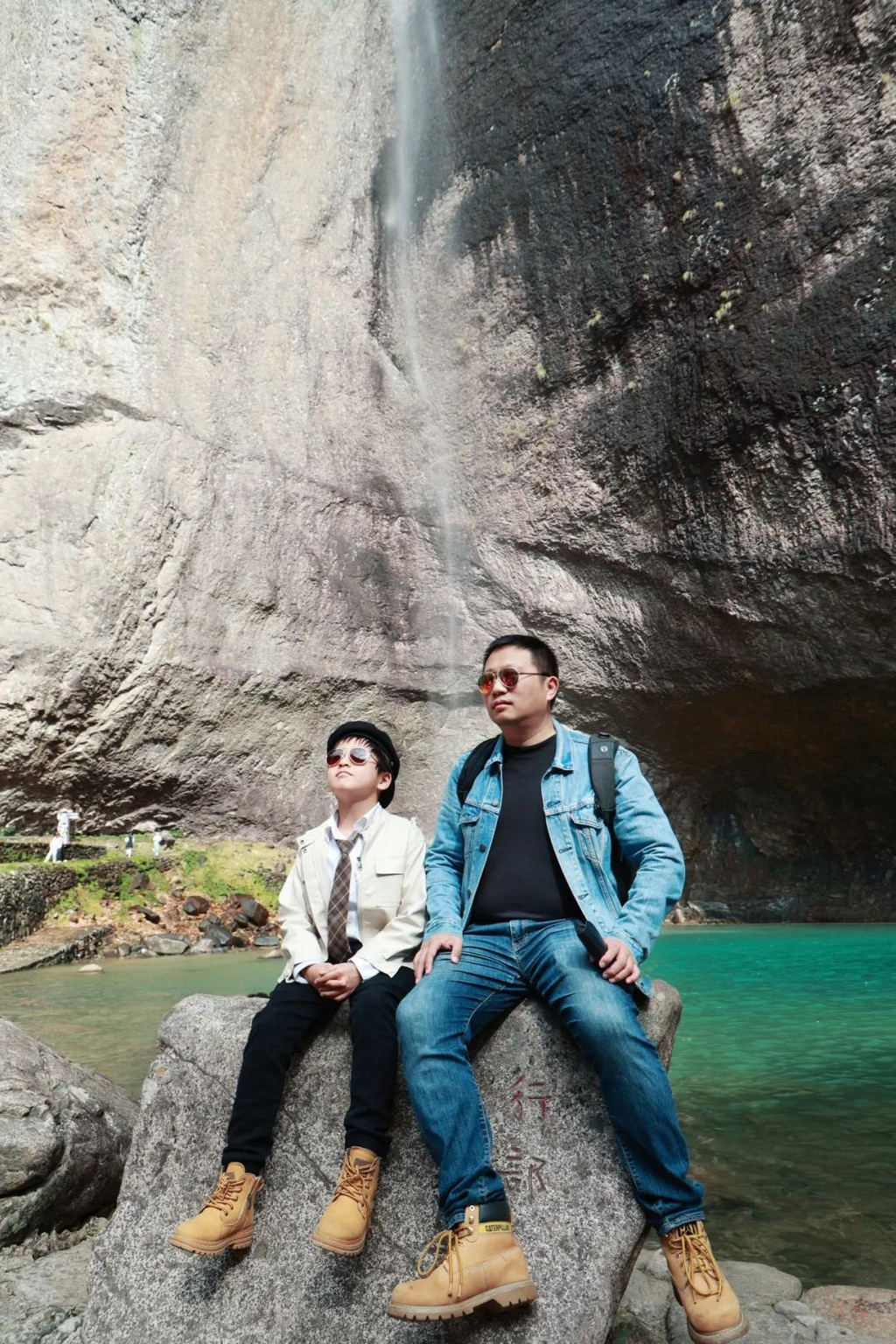 尽管不如丰水期时的瀑布壮观,但瀑布本身宛如银龙从天而降,水流落地时惊起无数水雾,宛若轻纱。瀑布下的碧潭呈现出好看的翡翠色,阳光透过水雾形成彩虹,孩子看得目不转睛,我们在这里拍了不少照片,记录这份与自然亲密接触的快乐。