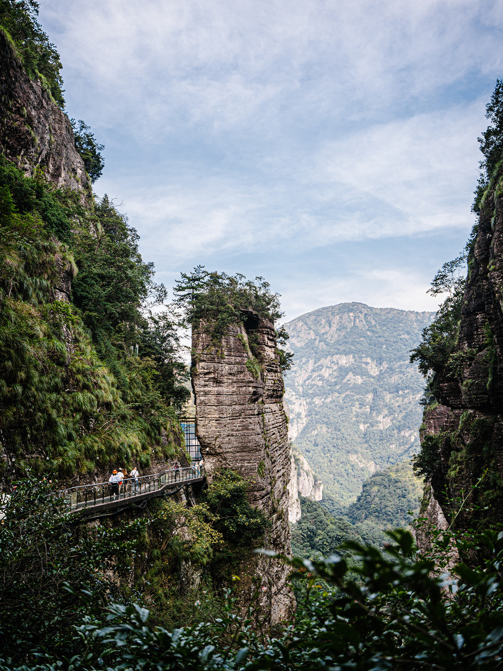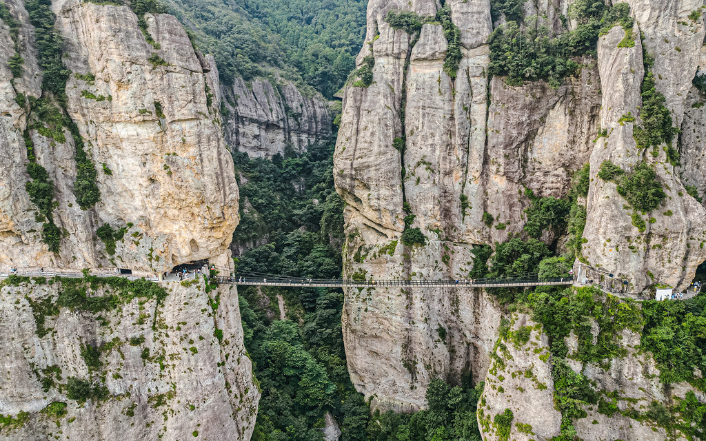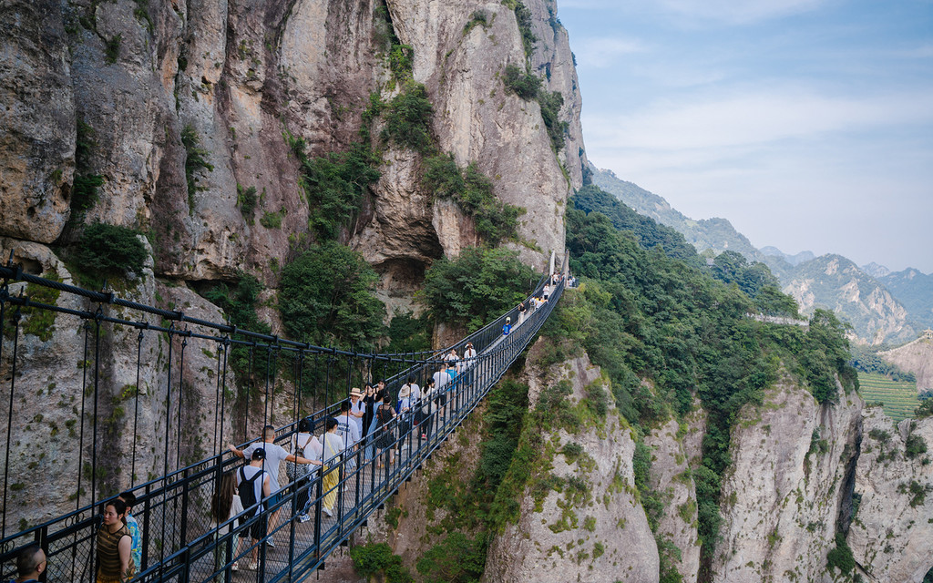 值得一提的是,雁荡山还有一座天空之桥,这座长约百余米的天空之桥,建于两崖之间,离地足有200米高。在铁索桥上行走,铁索晃荡,多了几分惊险与刺激。