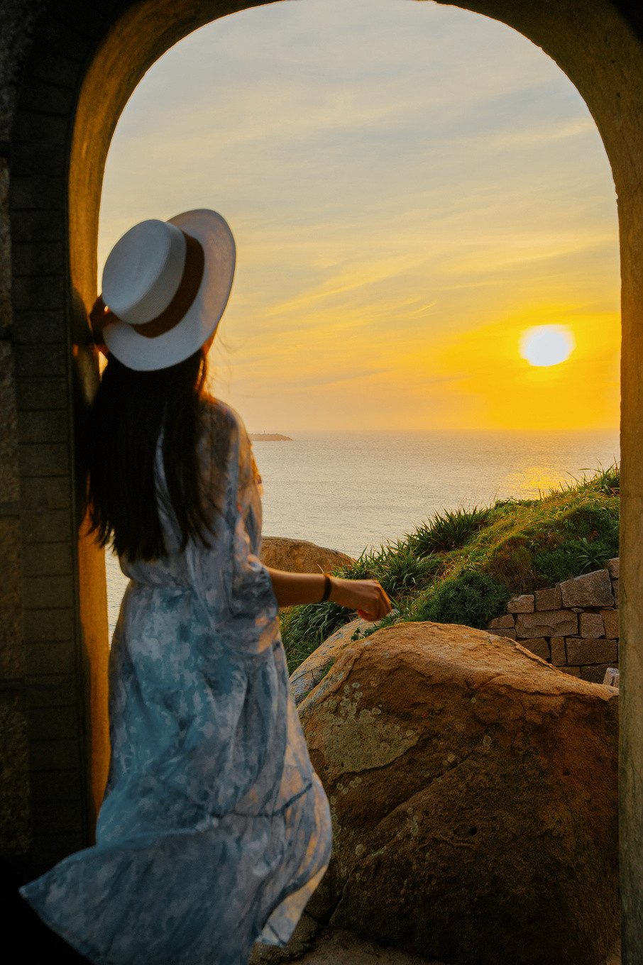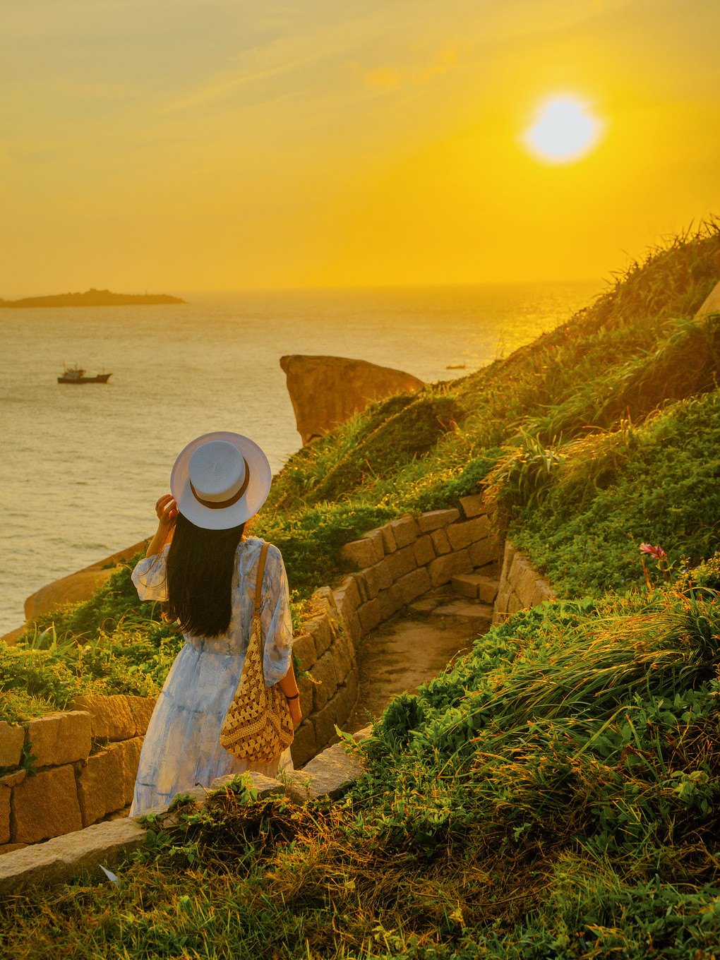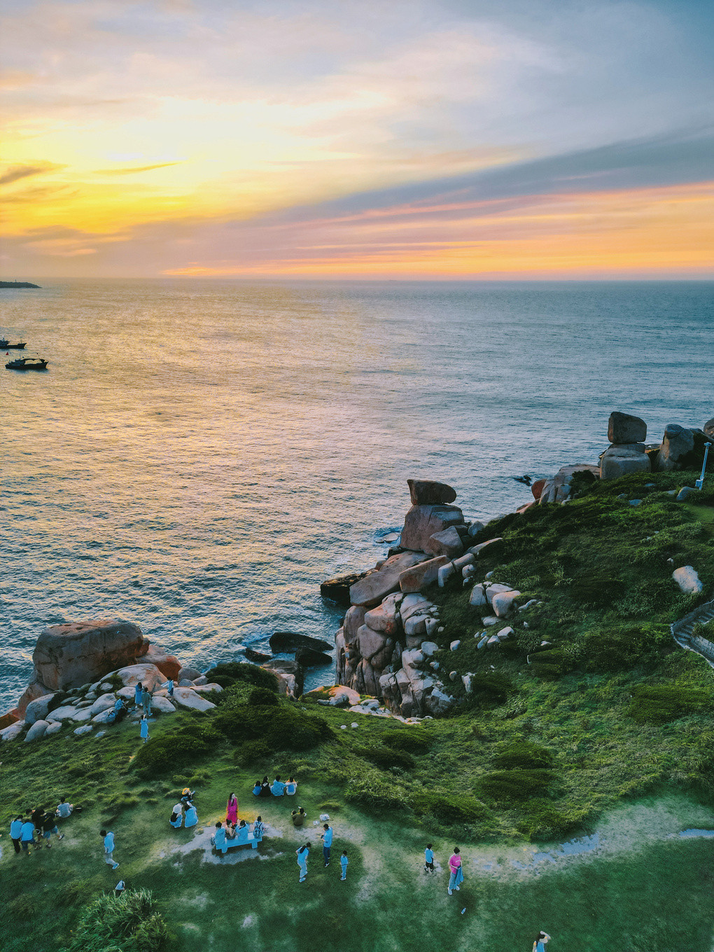 从大沙岙走到马祖岙也就500米左右的距离,最美的时刻莫过于落日时分,渔船归港,海鸟归巢,夕阳将海面染的如同洒了一层金粉,随着波浪闪闪发光,暮色为这里披上金纱,晚风也蘸着南麂的海水,在夏夜信笺上写下温柔的涟漪~