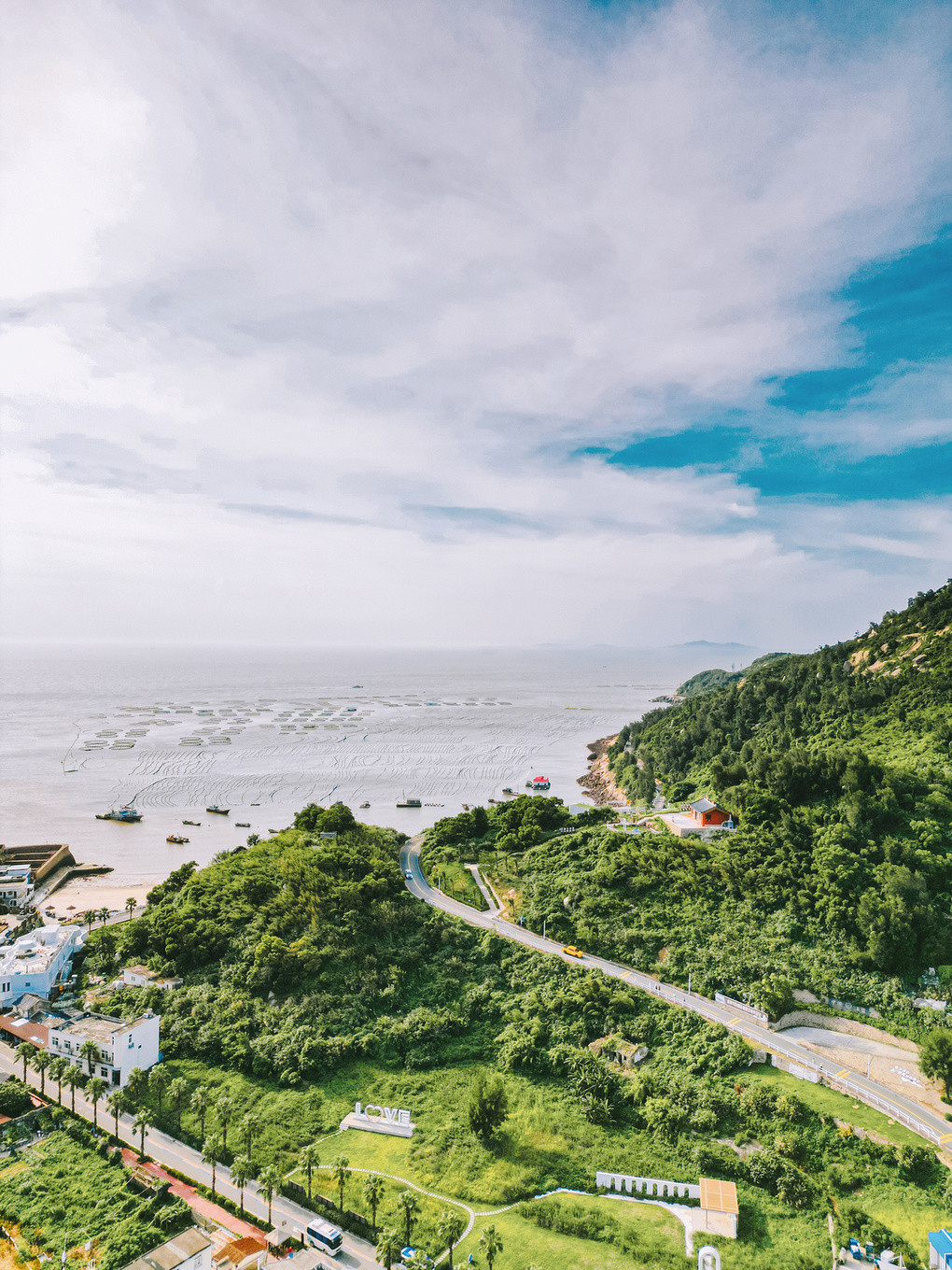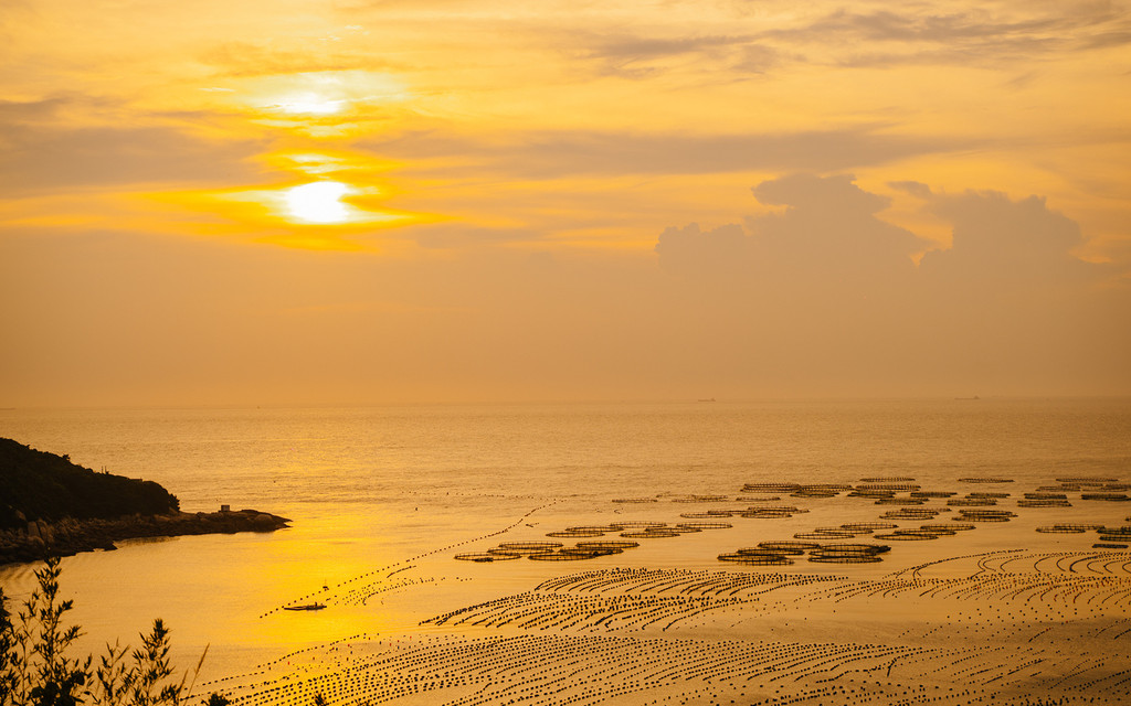 金的沙,蓝的海,柔的风,淡的云,沿途山海相连,风景如画,金色沙滩、岛礁怪石、肥沃滩涂、渔村古寨等美景串珠成链。