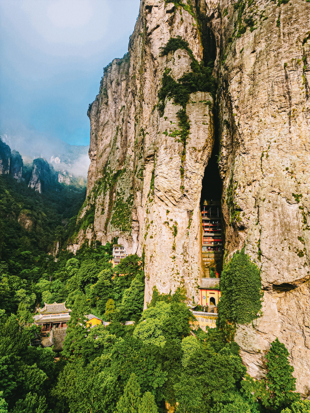 值得一提的是,山间还有座九层的观音洞,403个台阶一步步往上虔诚礼佛,便会发现这座寺庙的险峻壮观!
