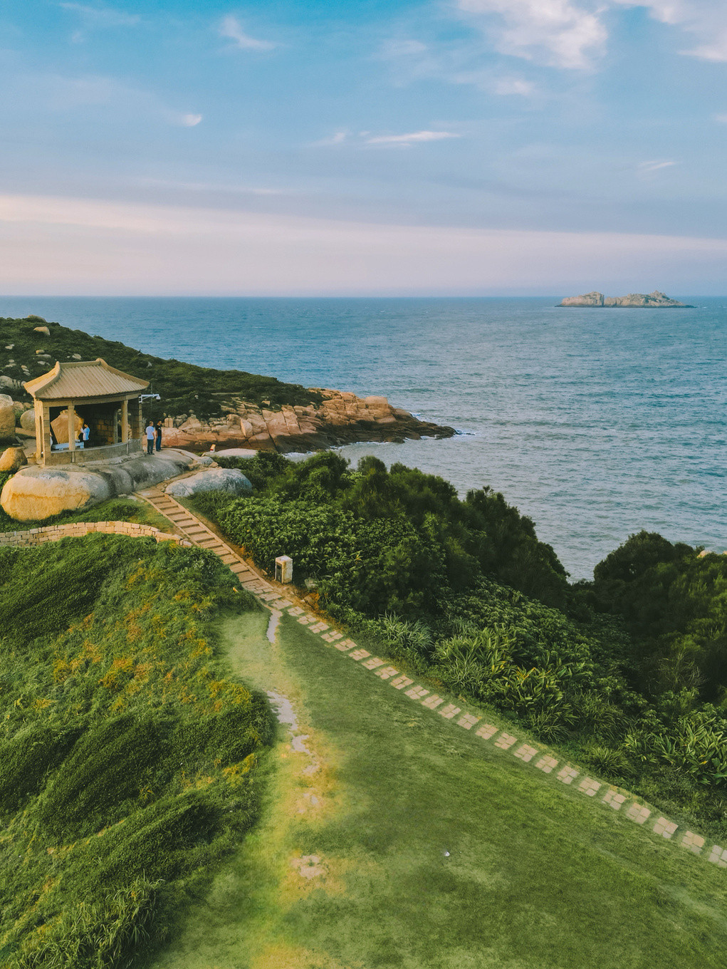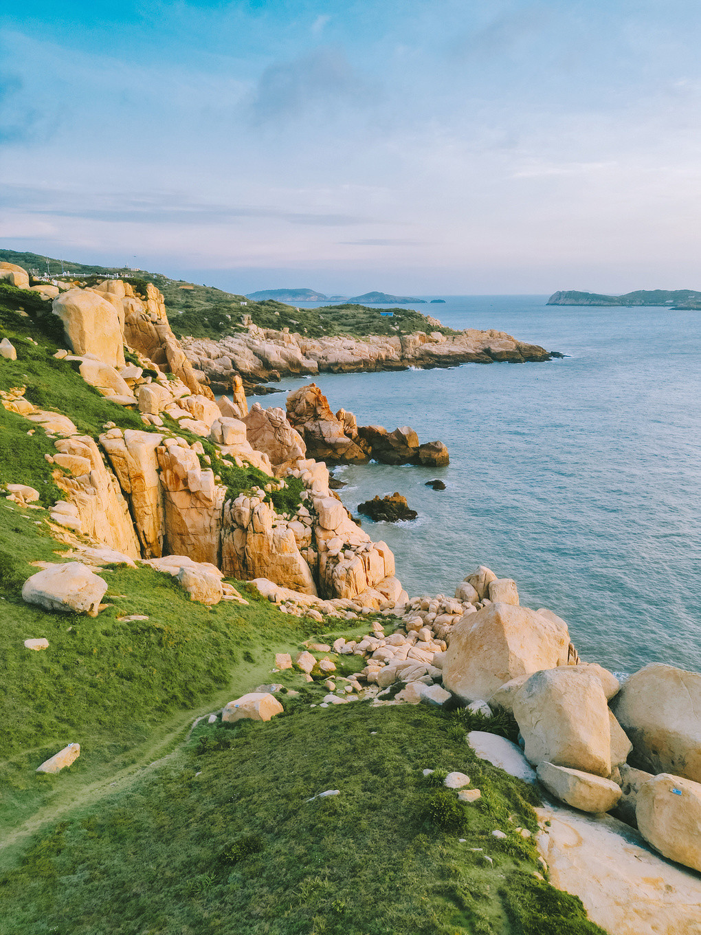 金沙碧海,奇礁怪石,异峰雅洞,共聚一岛。更引人入胜的是,还有一片天然大草坪,当我沿着山脉的石阶缓步上行,远远地就有无边的草色没入眼帘,美成了画~