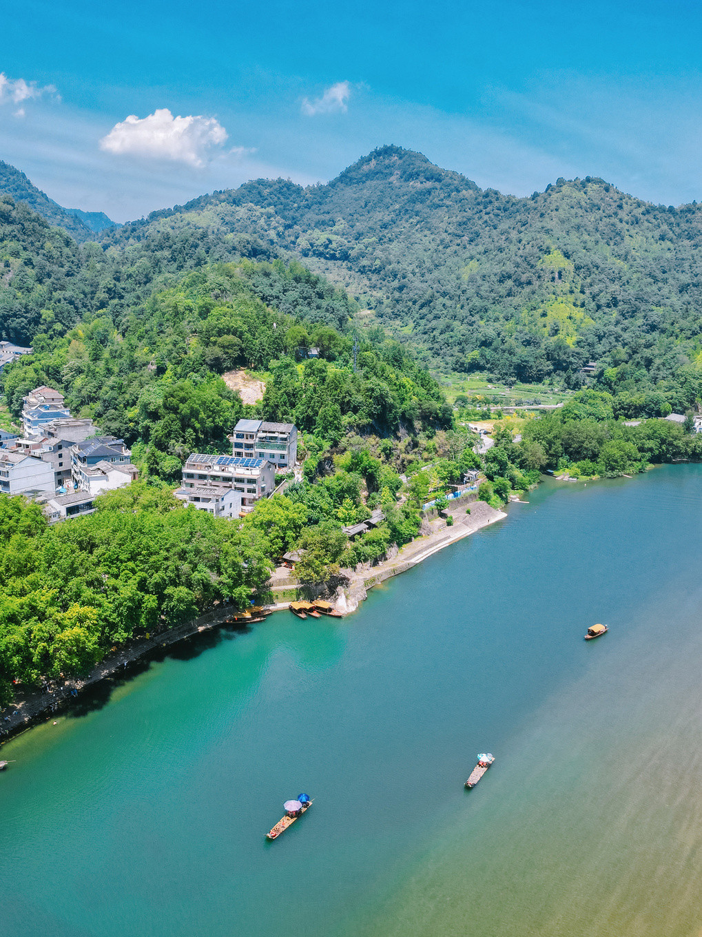 小小竹筏江中游,巍巍青山两崖走,静听水声真活泼,饱看山色自清凉,夏天来这里,真真是自得一处清凉自在,眼前的一弯碧水,几只竹筏,就是一段浮生半日闲的好时光~