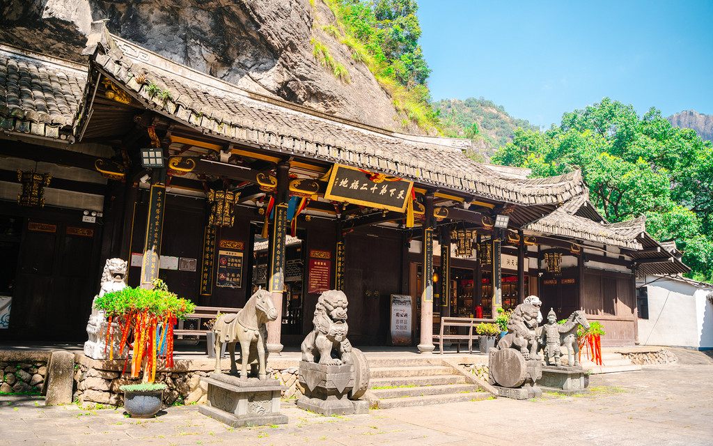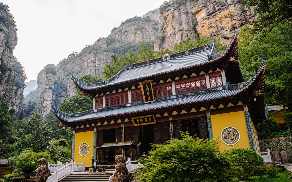 下山路上还会偶遇灵岩寺,这也是雁荡山著名的十八大古寺之一,最早建于北宋太平兴国年间,前面右首为天柱峰,左首为展旗峰。