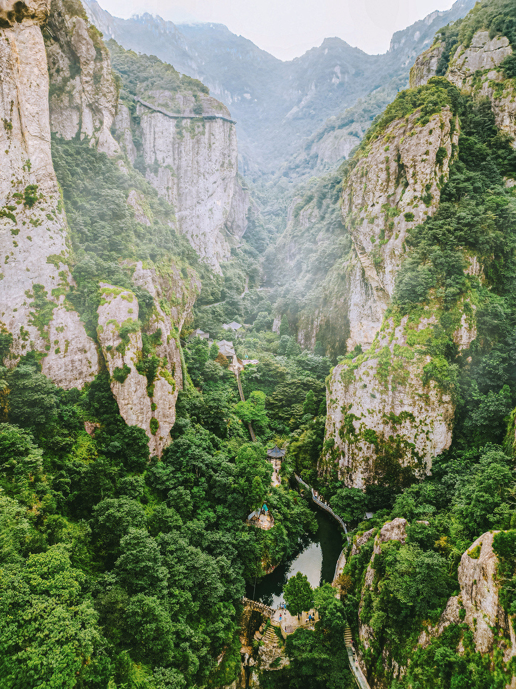 绝壁上架起了百余米的栈道,沿着栈道一路行走,一面是万丈深渊,一面是起伏的岩壁,凭栏俯瞰,一不小心就吓软了腿!
