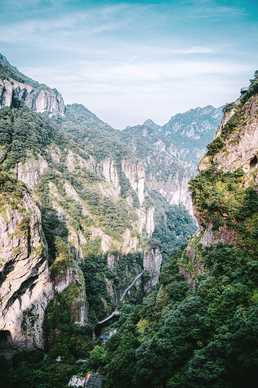 愈往前爬,愈发感受到天空的宁静深远,曲径蜿蜒宛若长龙,行走在这里,俨然在云中漫步,身心仿佛被蕴藏其间的馥郁灵气所浸润~