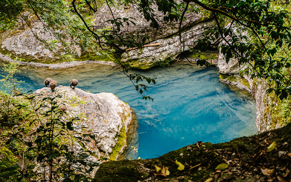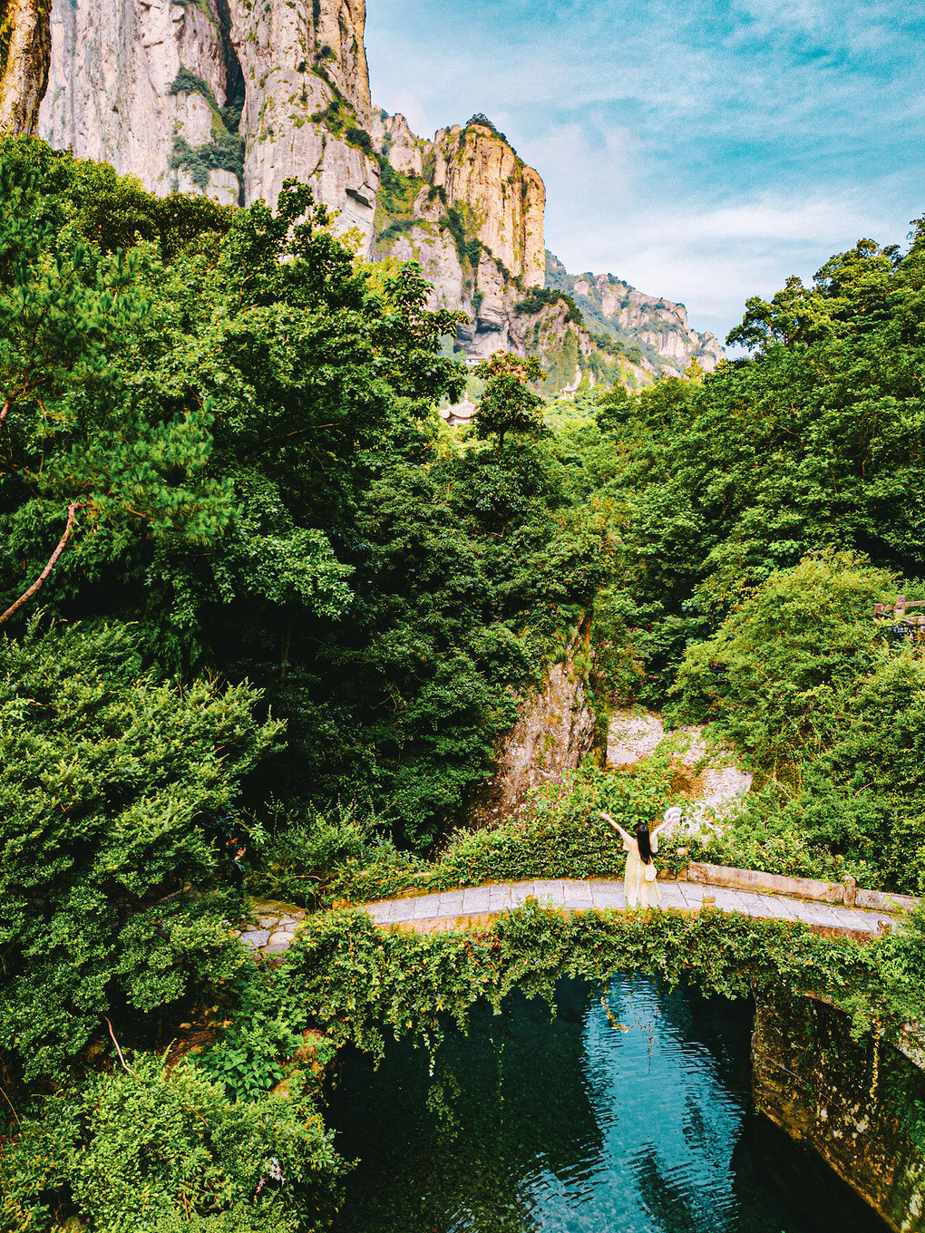 这里更有堪比九寨沟的水,在果盒桥桥下,碧蓝如玉的水静静流淌,由于雁荡山所含的矿物质品种较多,所以水的颜色也随着岩石种类的变化而变化,一半是蓝绿色的璞玉,而另一半则是清澈见底的明镜。